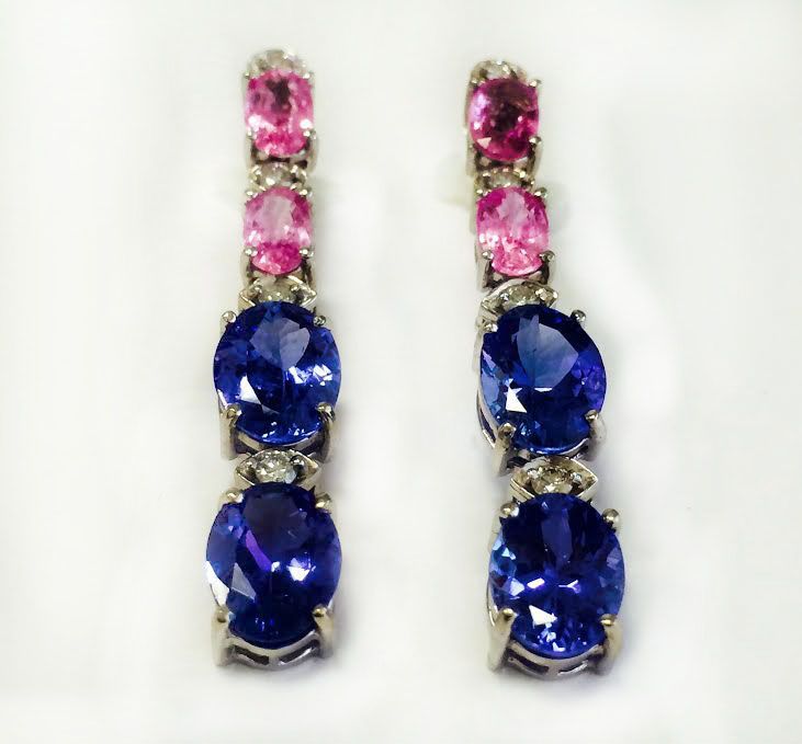 PINK TOURMALINE 2.19CT / TANZANITE 5.83CT, 14KW/G EARRING 3.90GRAM / DIAMOND 0.32CT