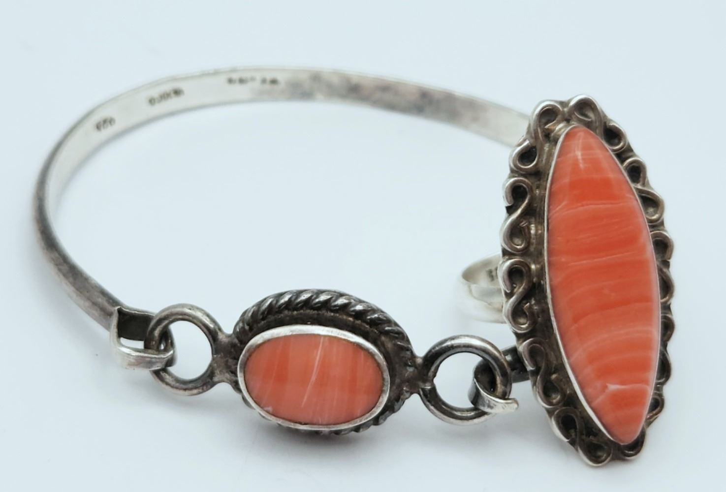 RING with OBLONG STONE SIZE 9 & HINDGED CUFF BRACELET - 18 DWT