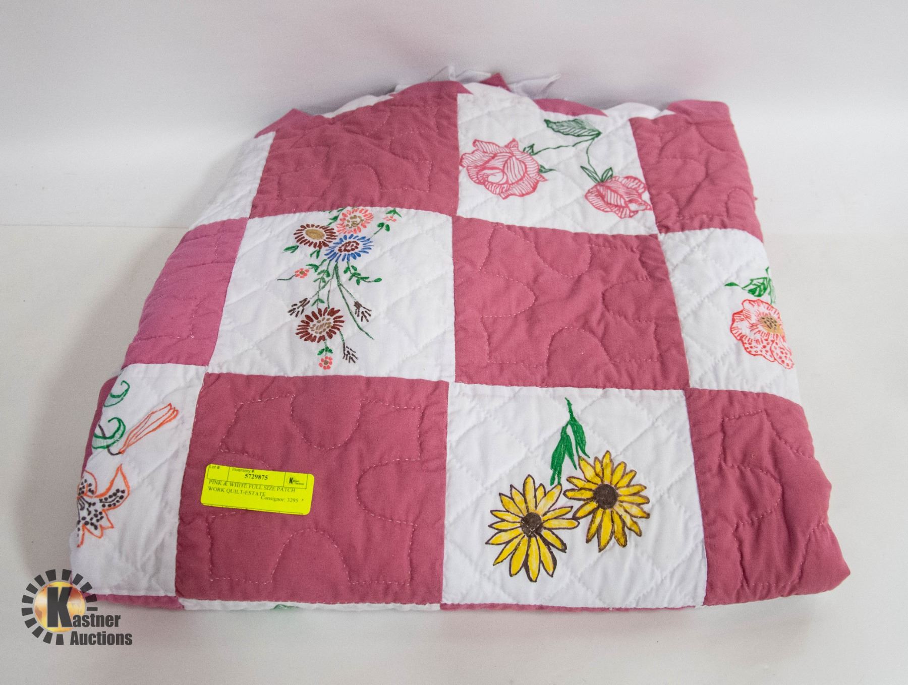 PINK & WHITE FULL SIZE PATCH WORK QUILT-ESTATE