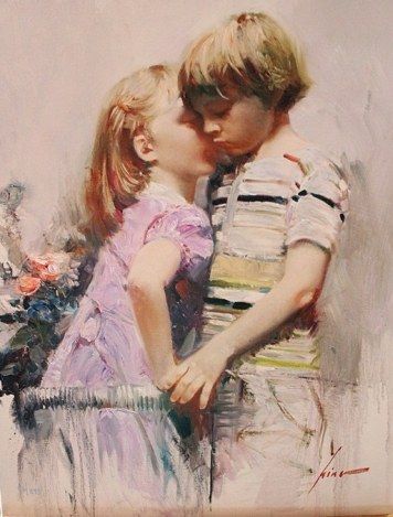 PINO "THE KISS" - HAND SIGNED BY THE ARTIST - LIMITED EDITION OF 295 - HAND EMBELLISHED BY PINO HIMSELF - GICLEE ON CANVAS - NUMBERED 16/295 - PROFESSIONALLY FRAMED - IMAGE 20" X 16" - FRAMED APPX. 24.5" X 20"