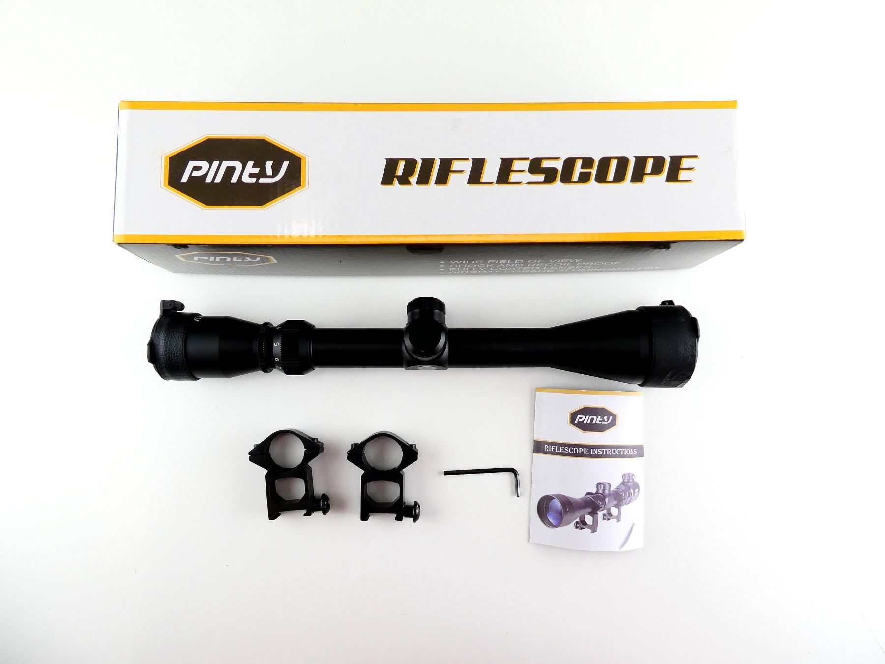 PINTY 3-9 X 40 RIFLE SCOPE WITH SEE-THRU RINGS LOT
