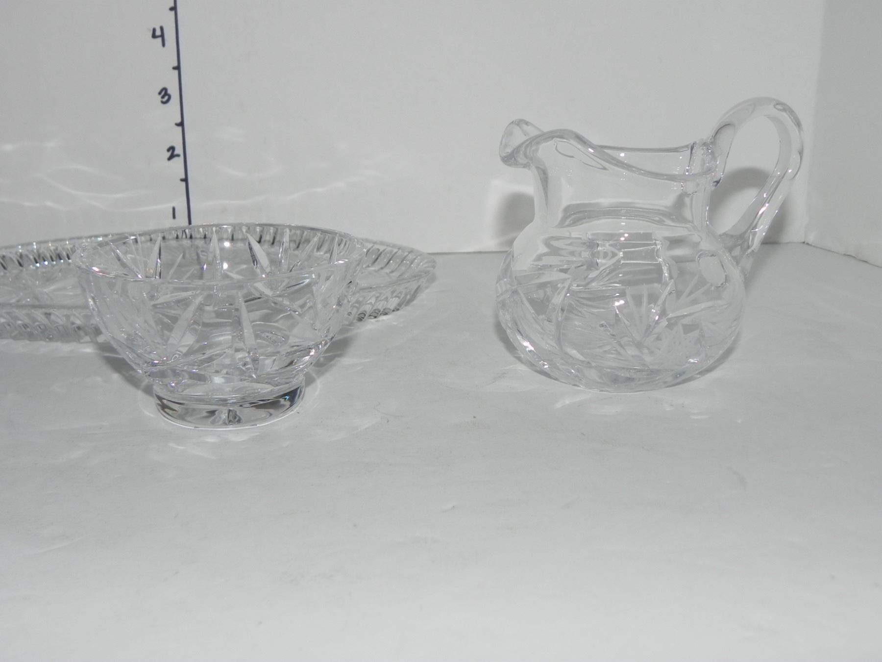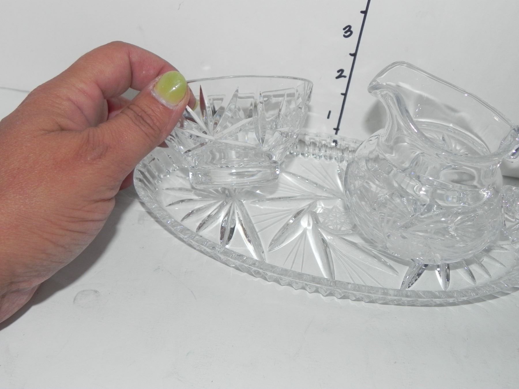 PINWHEEL CRYSTAL CREAM AND SUGAR SET WITH PLATE