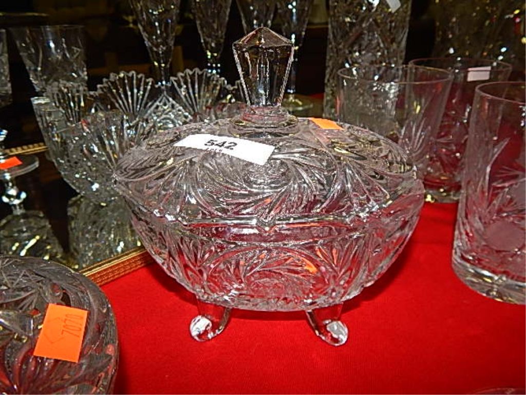 PINWHEEL CRYSTAL OVAL BOWL WITH LID AND FEET