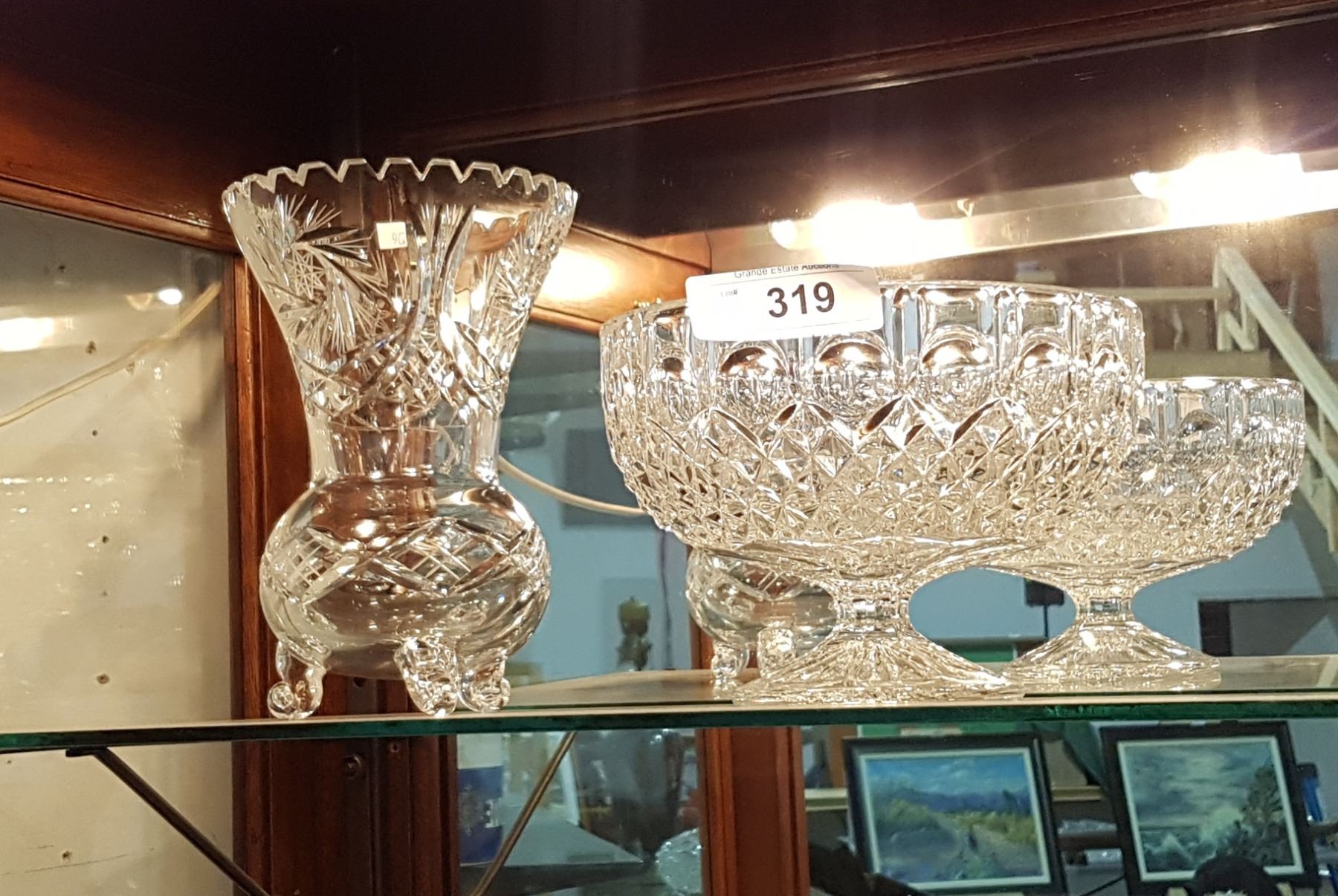 PINWHEEL CRYSTAL VASE & CRYSTAL PEDESTAL BOWL