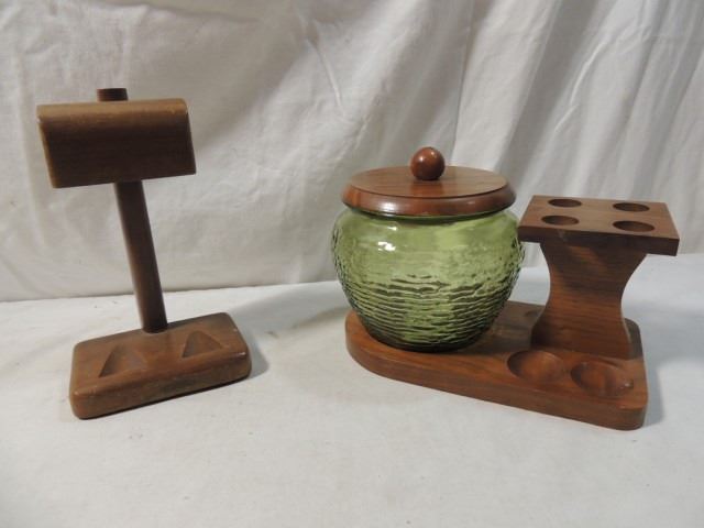 ORIGINAL TOBACCO HUMIDOR JAR, WITH PIPE RACK, AS SHOWN. AND SECOND DOUBLE PIPE RACK ALSO INCLUDED. BOTH FOR ONE MONEY.
