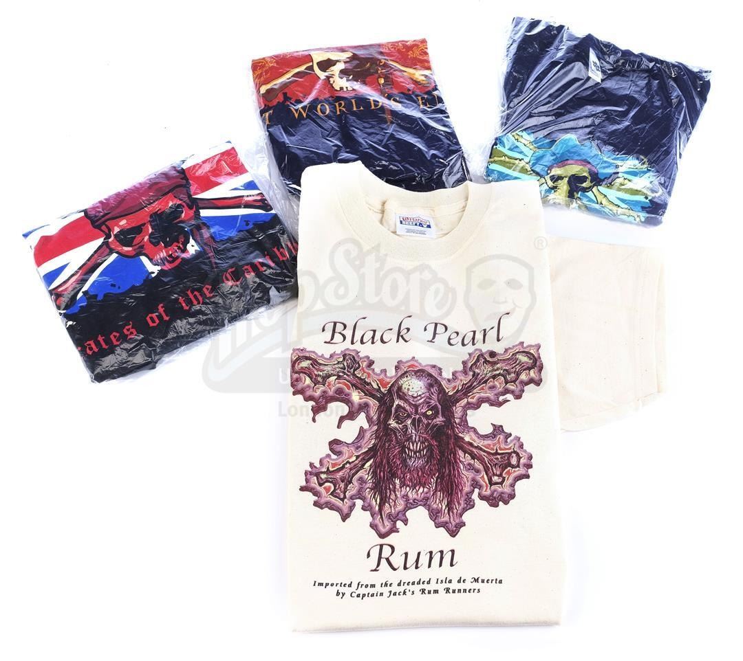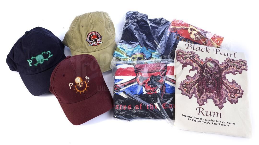 The highly detailed fibreglass Jones (Bill Nighy) bust was created with a separate pirate hat (which has had some repair work carried out after production) and particle board base painted coppertone and silvertone. Also included are three ILM VFX crew hats from the first three films, respectively; and four cotton crew T-shirts from the films, ranging in size from M to XL. The lot is in good overall condition with wear and flaking paint from production. Dimensions (largest): 66 cm x 43.25 cm x 33 cm (26" x 17" x 13"); (smallest): 6.5 cm x 4 cm x 4 cm (2 1/2" x 1 1/2" x 1 1/2")