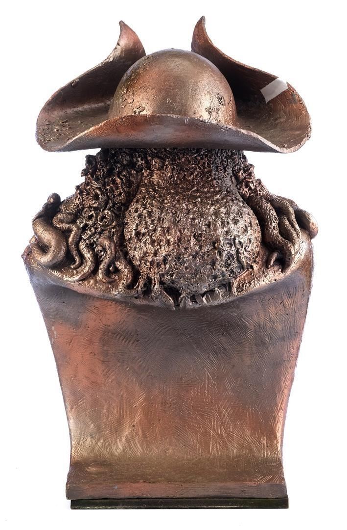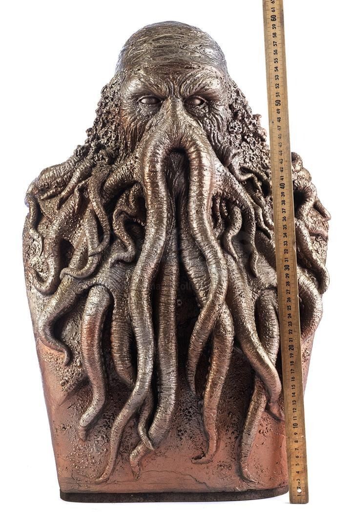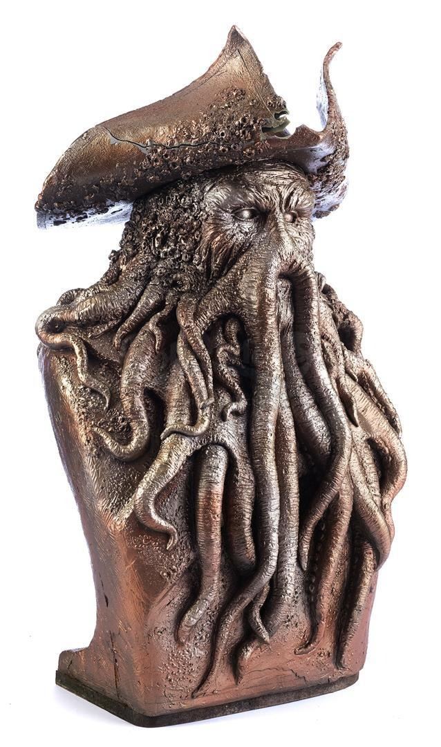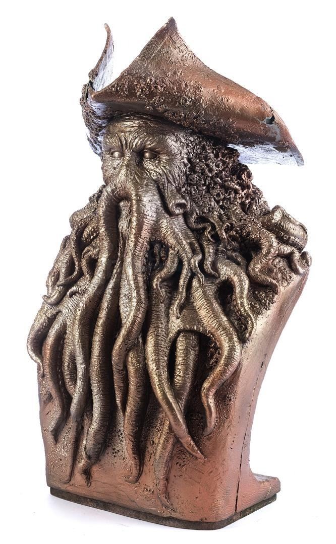 A Davy Jones digital animation reference bust and production ephemera from Gore Verbinski's fantasy swashbuckler Pirates of the Caribbean franchise. This bust was sculpted by Industrial Light & Magic's (ILM) Richard Miller as a physical reference piece for the digital animation team working on the Davy Jones character, who benefitted from seeing a 3-D model of Jones while animating. The bust may have also been used for digital scanning; several castings were made during production to be used as needed.