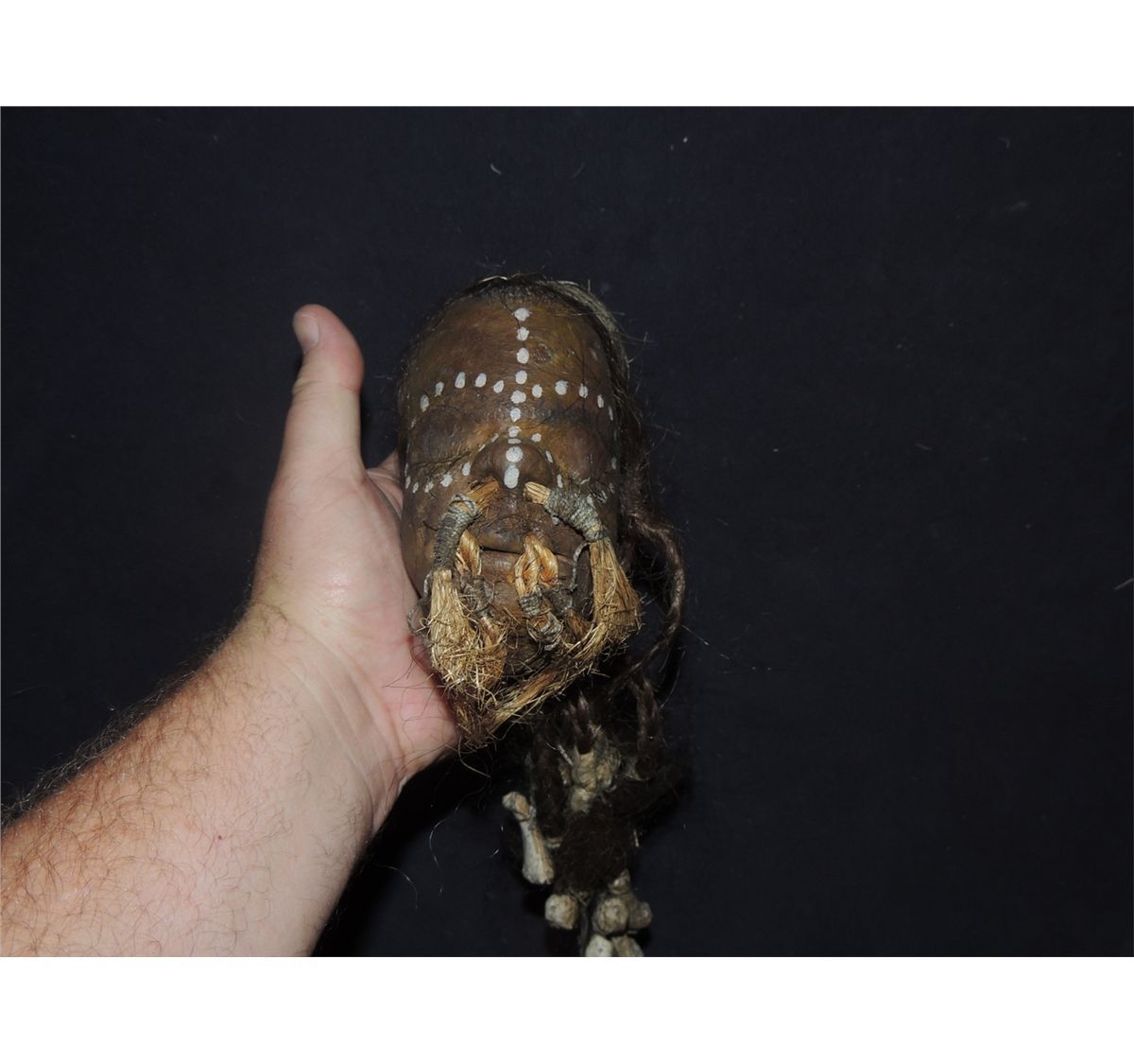 This is 1 of 4 Screen Used Shrunken Heads from the Cannibal Island scenes of PIRATES OF THE CARIBBEAN DEAD MAN'S CHEST. Seen as Johnny Depp's Captain Jack Sparrow is made the king, or should I say The Main Course! LOL!