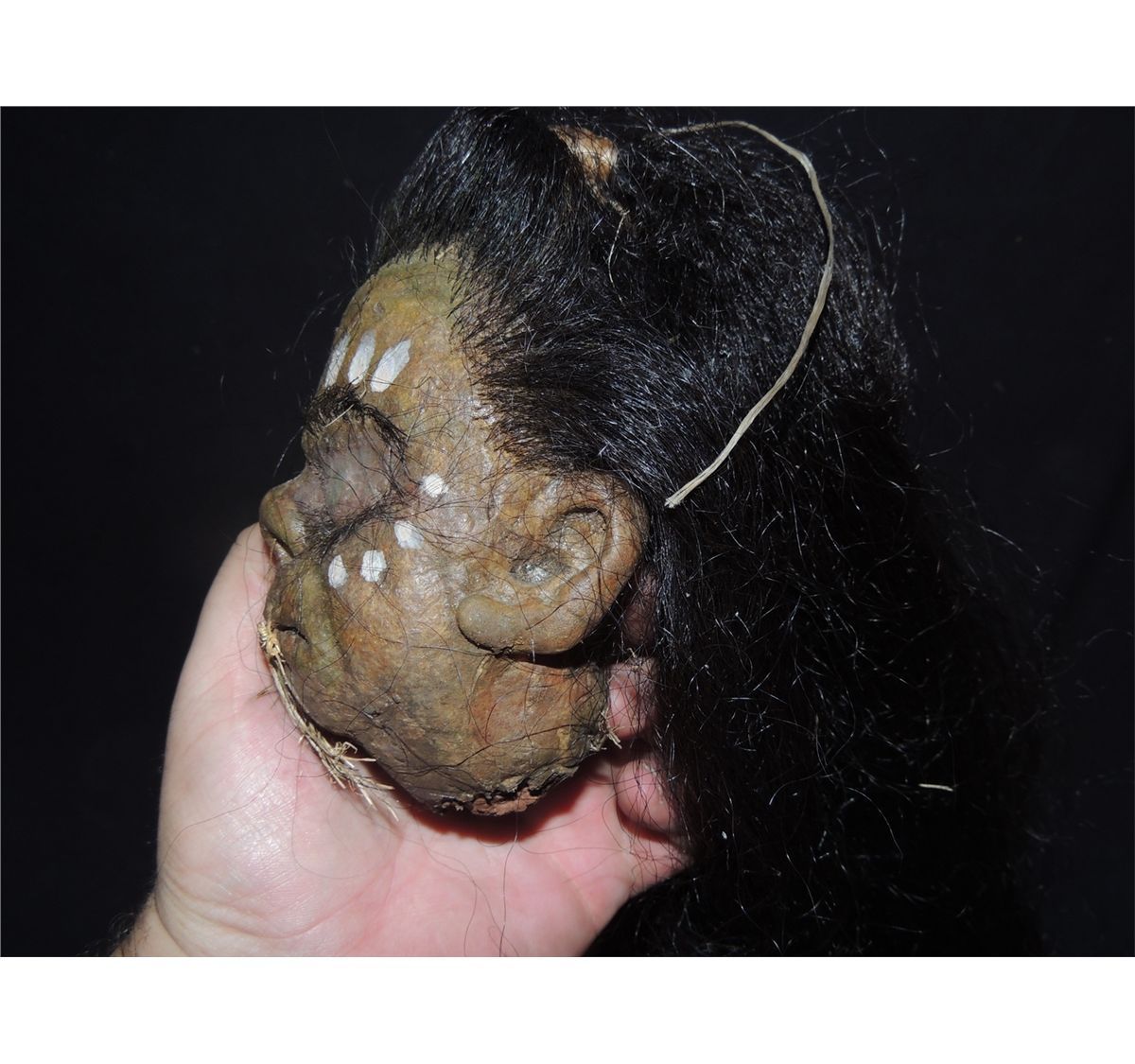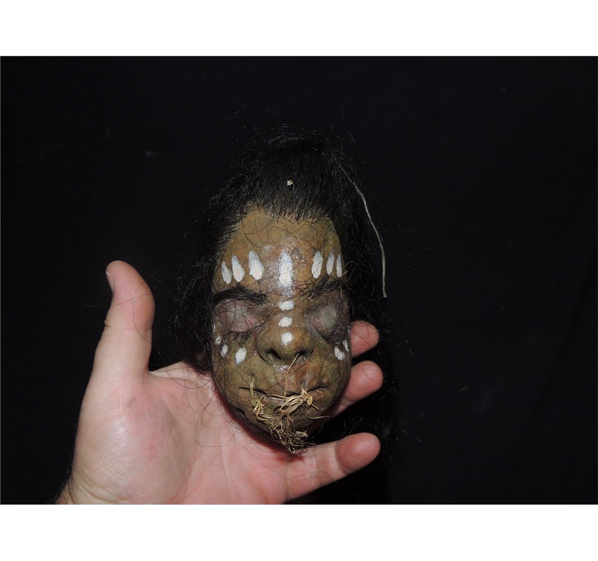 This is 1 of 4 Screen Used Shrunken Heads from the Cannibal Island scenes of PIRATES OF THE CARIBBEAN DEAD MAN'S CHEST. Seen as Johnny Depp's Captain Jack Sparrow is made the king, or should I say The Main Course! LOL!