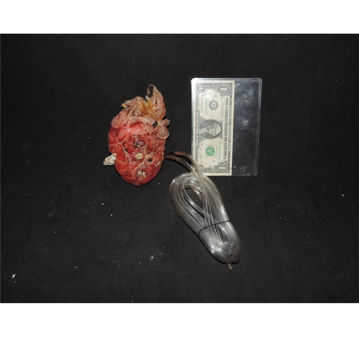 This is the silicone stabber version with blood rigs intact of Davey Jones' heart from PIRATES OF THE CARIBBEAN DEAD MANS CHEST.