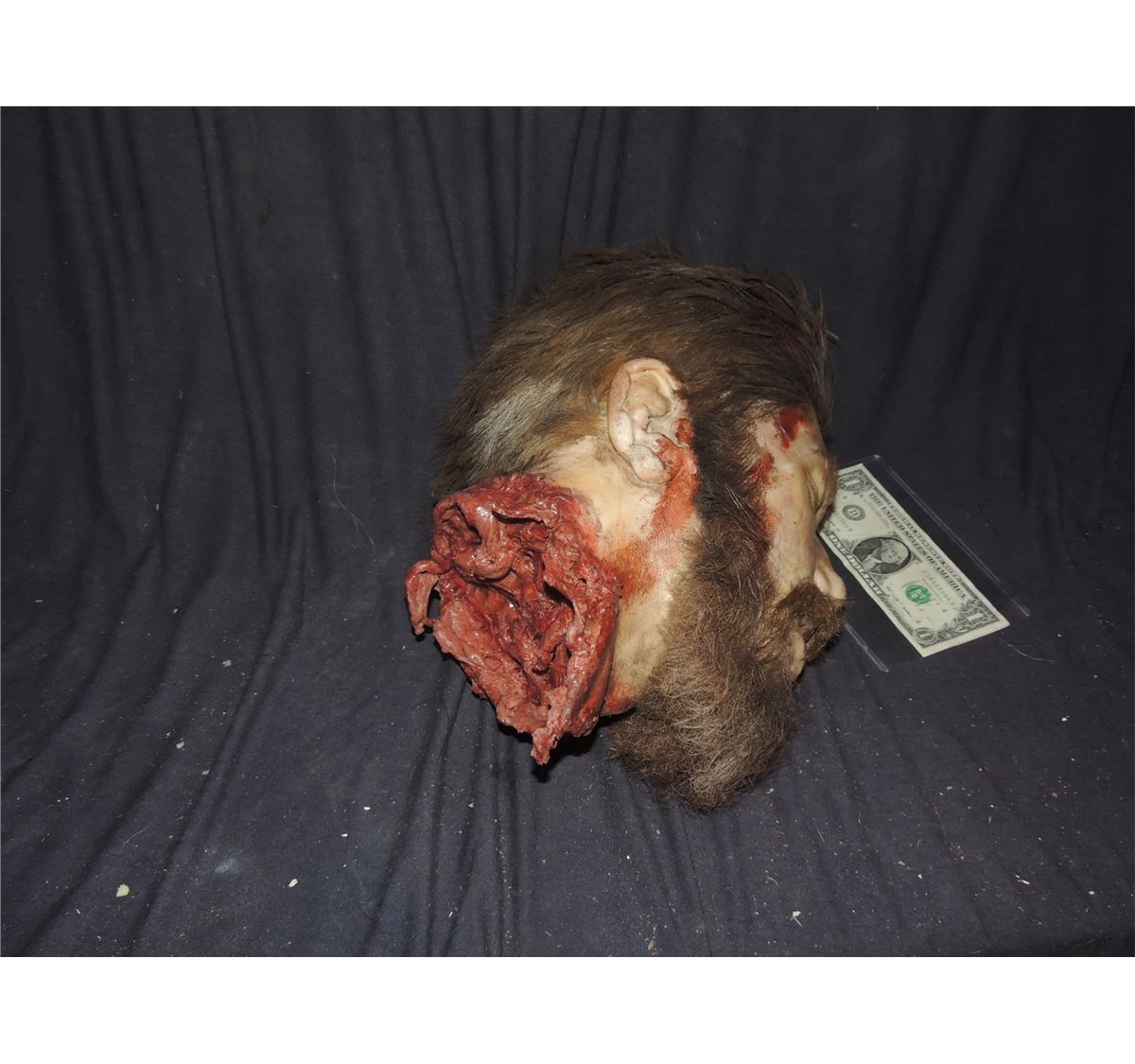Incredible quality and condition! These are arguable the coolest severed heads I have ever offered! Each is silicone on rigid foam with acrylic eyes, and teeth, and hand punched hairs. These have the look and weight of real severed heads.