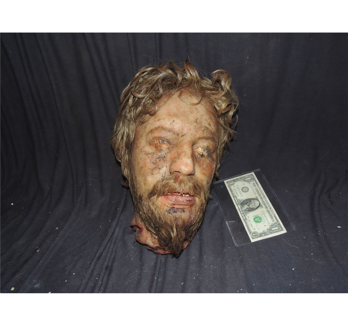Incredible quality and condition! These are arguable the coolest severed heads I have ever offered! Each is silicone on rigid foam with acrylic eyes, and teeth, and hand punched hairs. These have the look and weight of real severed heads.