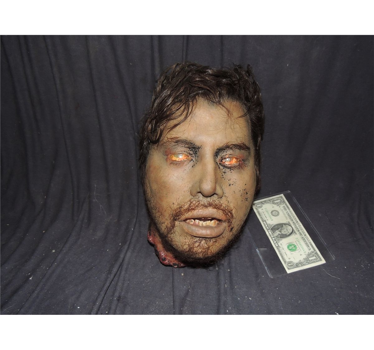 Incredible quality and condition! These are arguable the coolest severed heads I have ever offered! Each is silicone on rigid foam with acrylic eyes, and teeth, and hand punched hairs. These have the look and weight of real severed heads.