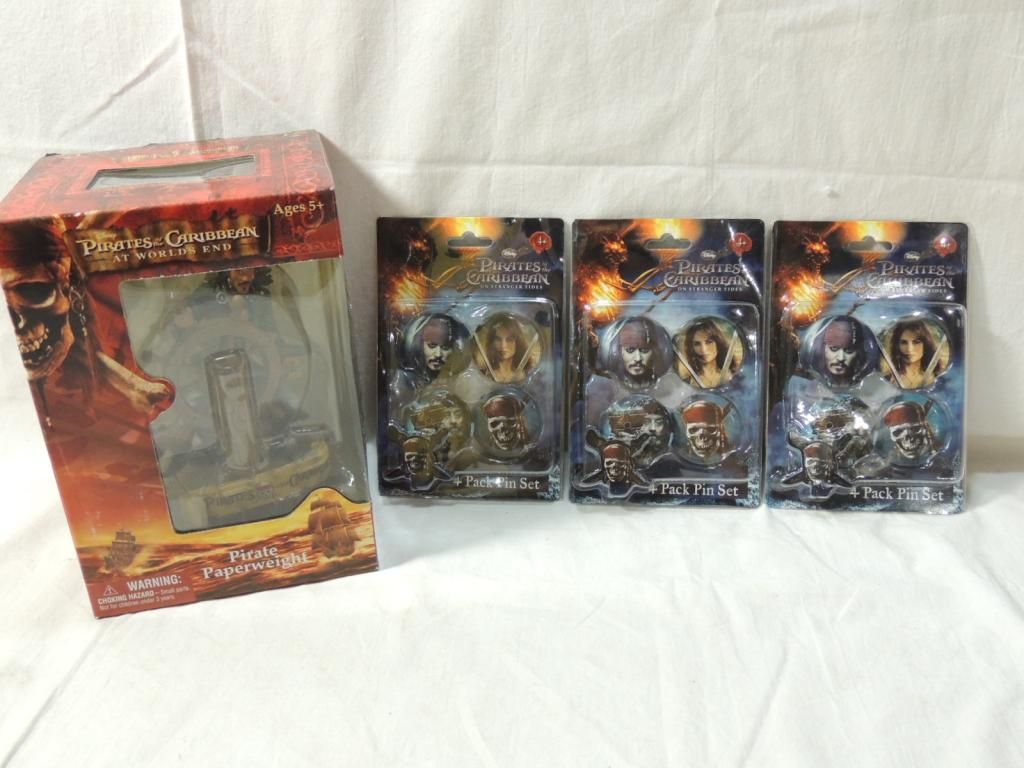 PIRATES OF THE CARIBBEAN AT WORLDS END PAPERWEIGHT. PIRATE PAPERWEIGHT. PIRATES OF THE CARIBBEAN ON STRANGER TIDES PACK PIN SET. AS SHOWN. SEE PHOTO FOR MORE DETAILS. COLLECTIBLE. DISNEY PIRATES.