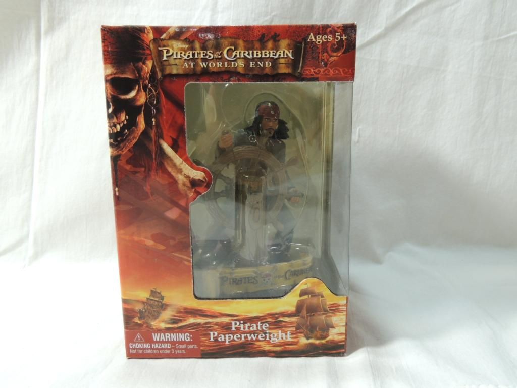 CAPTAIN JACK SPARROW. PIRATES OF THE CARIBBEAN AT WORLDS END. NEW IN BOX. DISNEY PIRATES. OFFICAL PRODUCT. PIRATE AT SHIPS WHEEL. AS SHOWN. SEE PHOTO FOR MORE DETAILS.