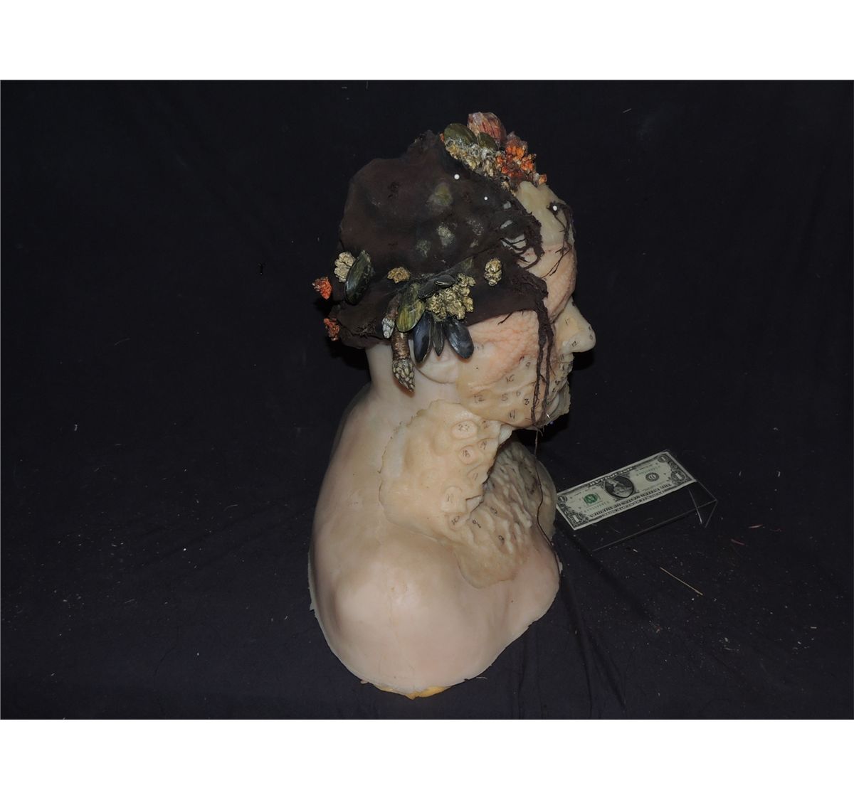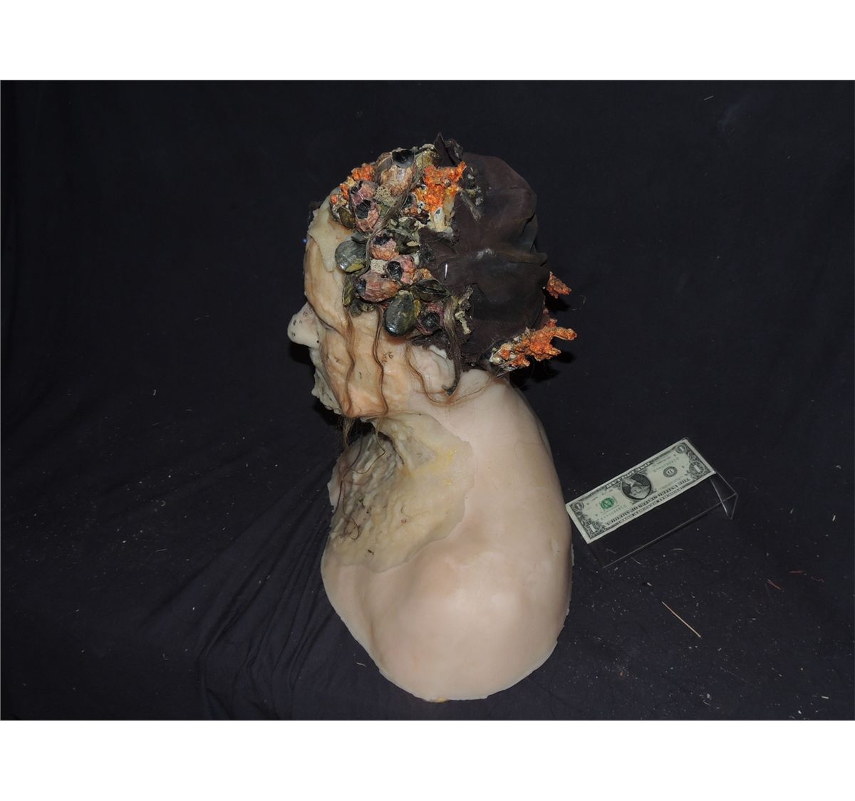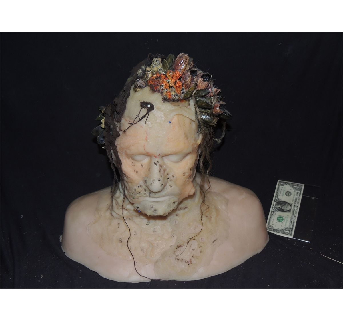 The main bust is a life cast with a complete set of silicone appliances that have numbers to coincide with the individual barnacles and other pieces to show what was to be applied where, and in what order. Rare combination of Screen Used and Behind The scenes elements that come together in a nice display.