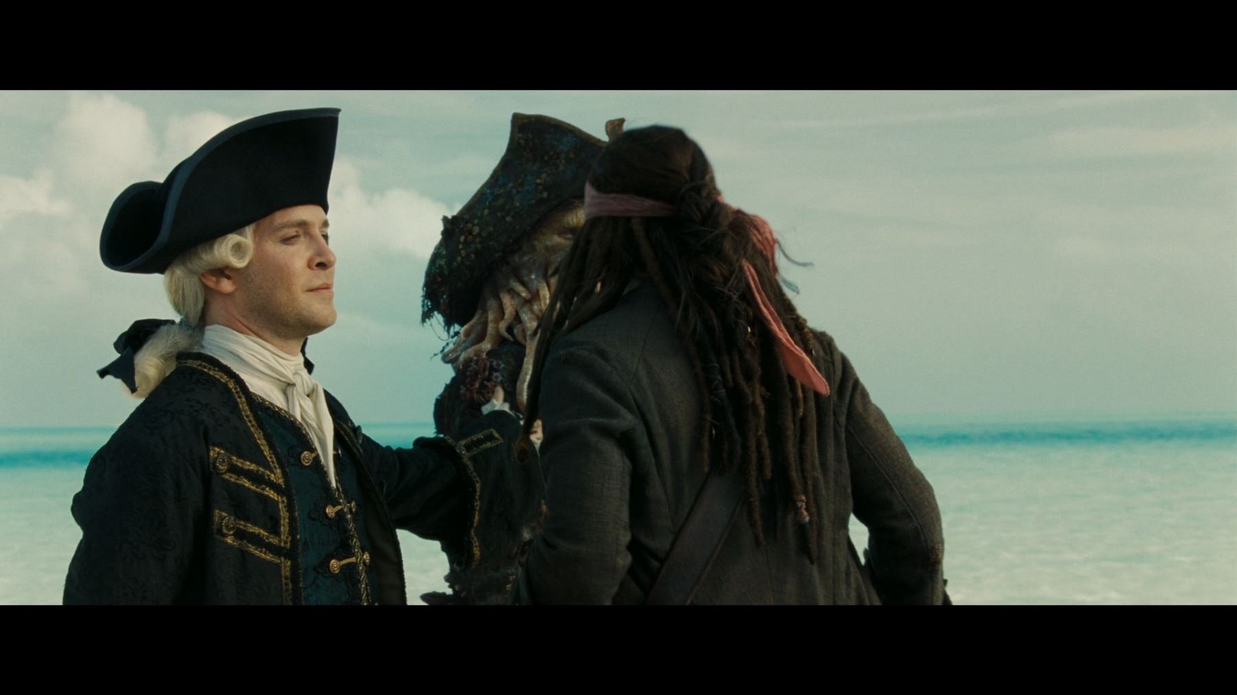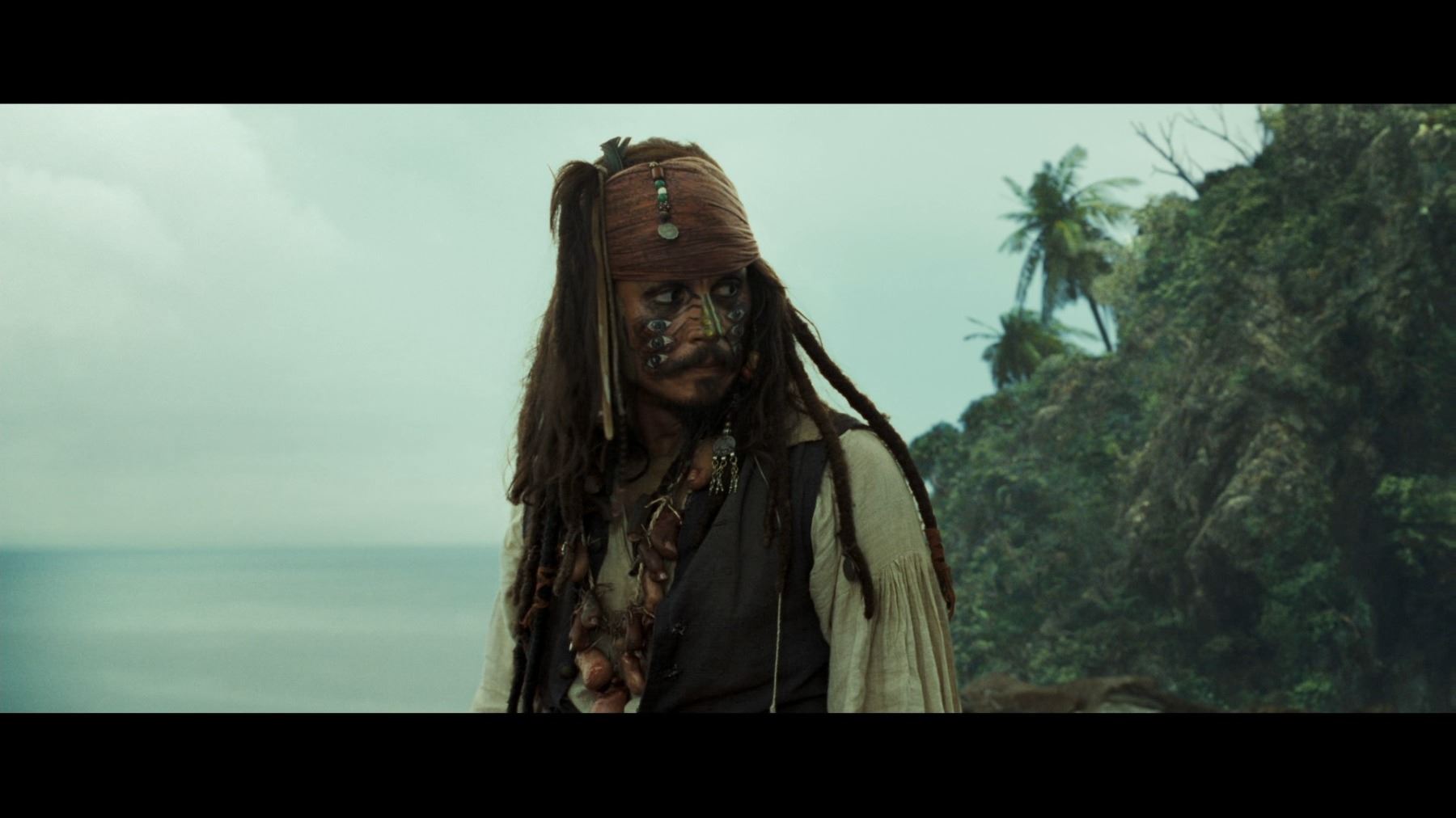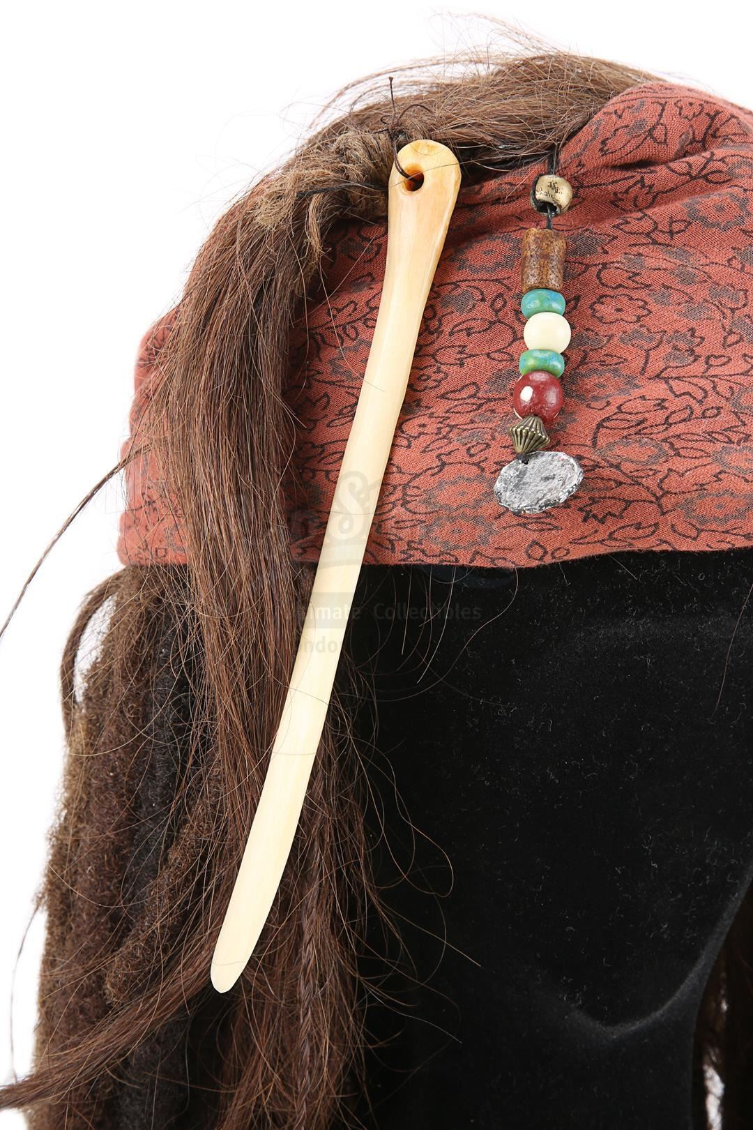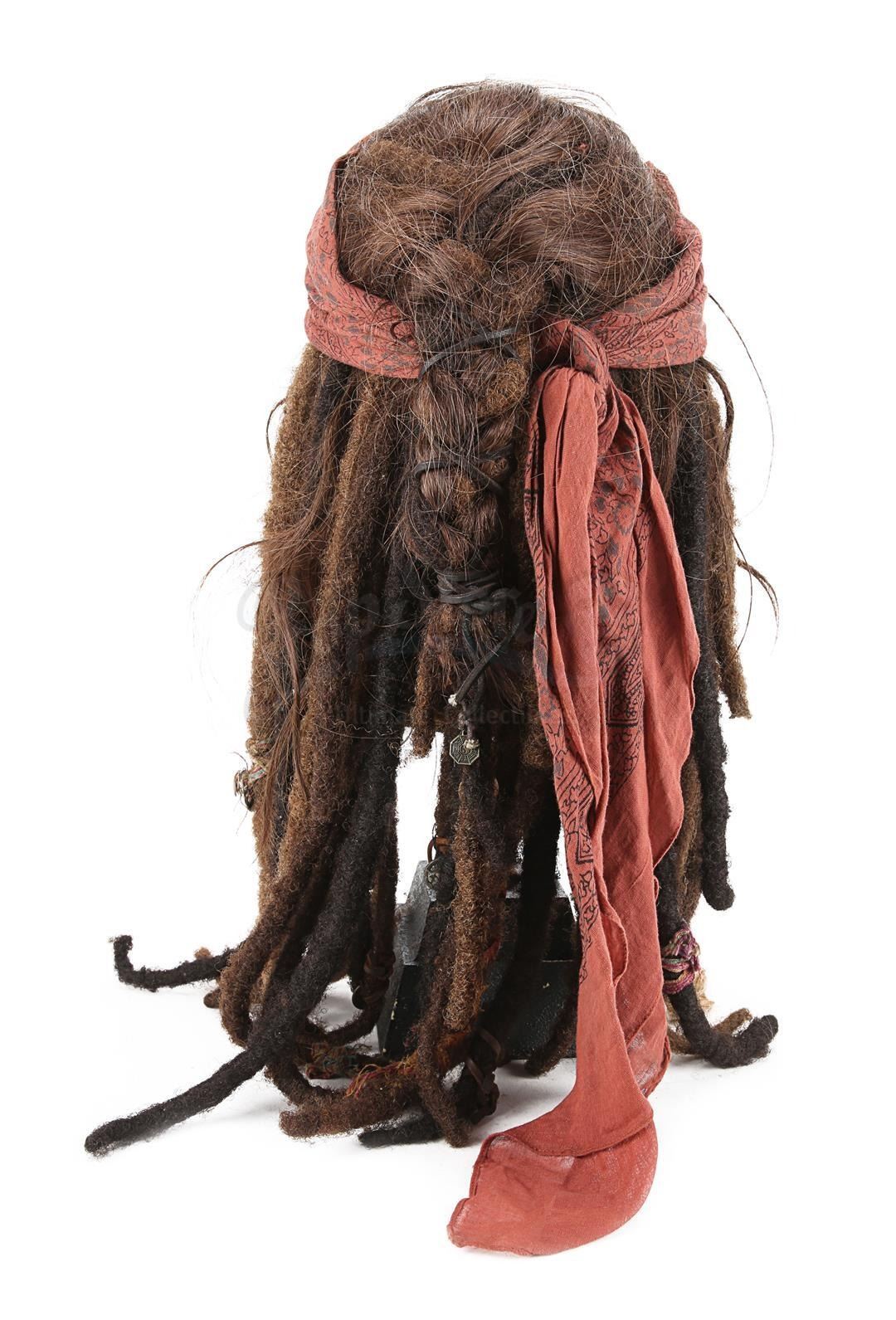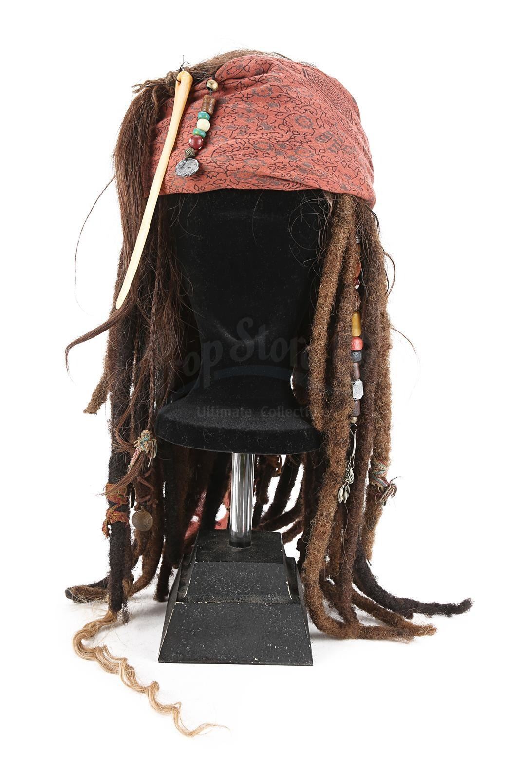 Captain Jack Sparrow's (Johnny Depp) and Angelica's (Penelope Cruz) wig and bandana from the Pirates of the Carribean film series. This wig was first worn by Johnny Depp as the infamous Jack Sparrow in the second Pirates of the Carribean movie, Dead Man's Chest. The longer blond extensions adhered to the ends of some of the wig's dreadlocks were added for the second and third films. The patterning on the wig's attached bandana is specific to the fourth film, On Stranger Tides, in which it was repurposed and worn by Angelica when she disguised herself as the trickster pirate.