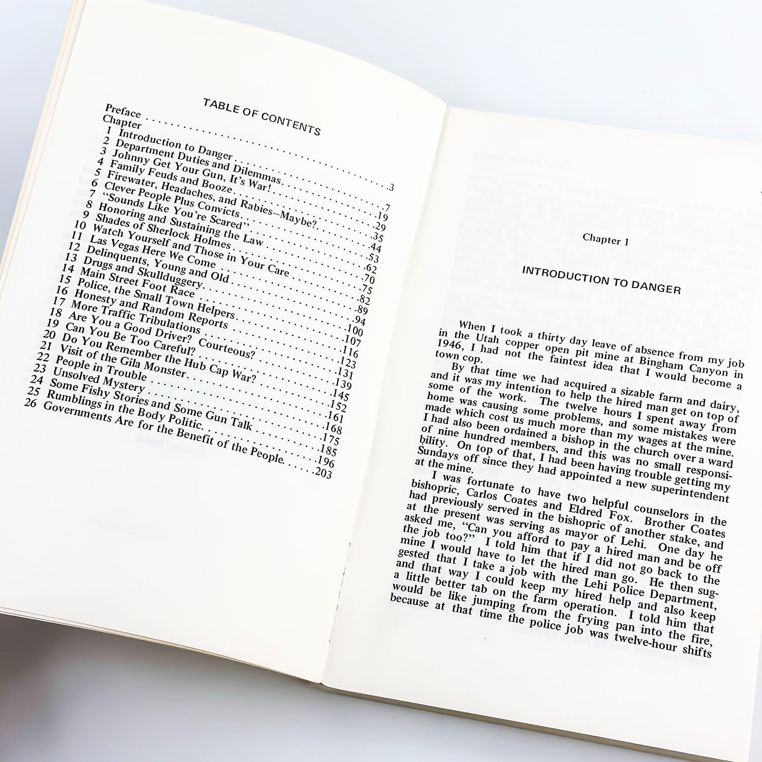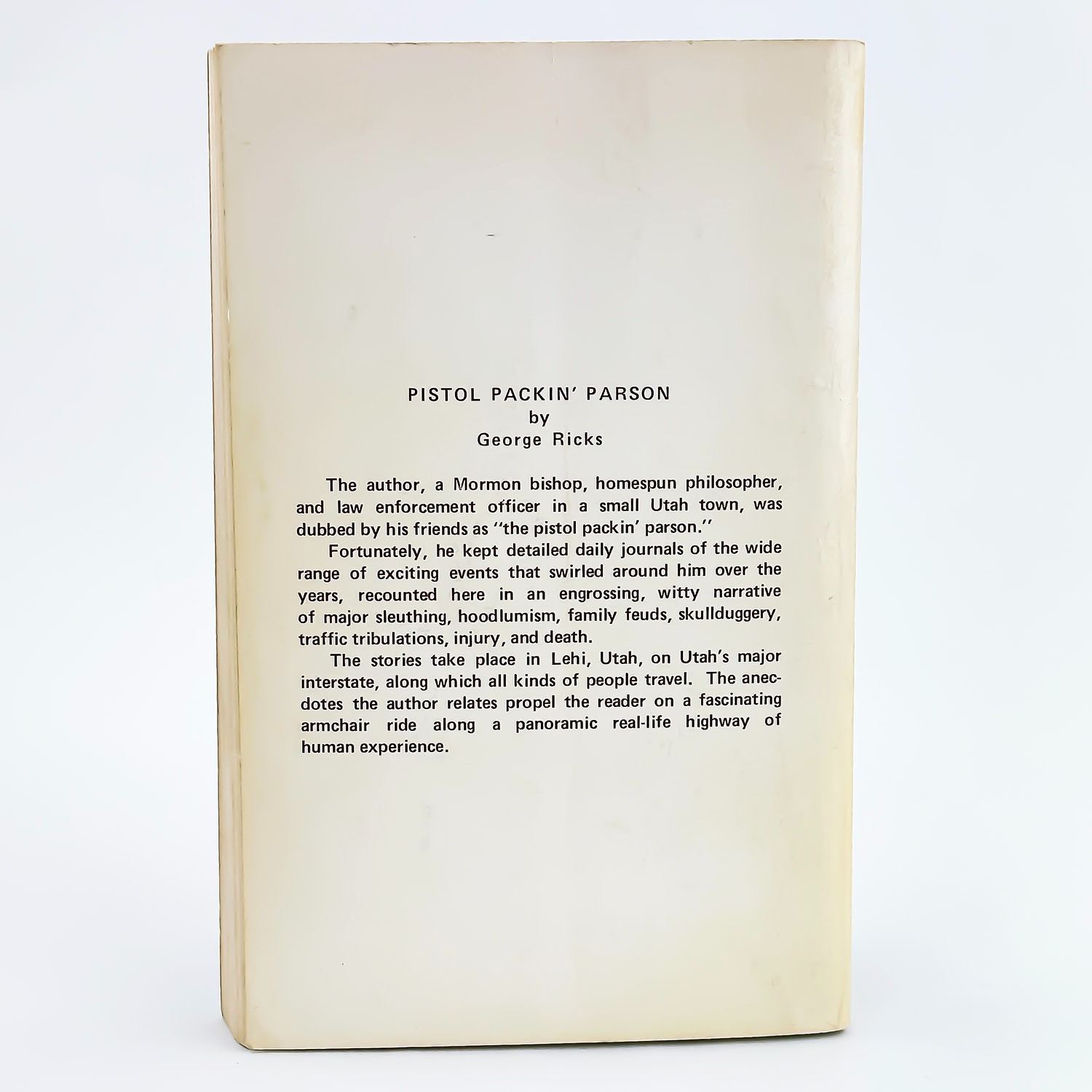 #8551 - SOFTCOVER BOOK BY GEORGE RICKS - AUTHOR, A MORMON BISHOP, HOMESPUN PHILOSOPHER, AND LAW ENFORCEMENT OFFICER IN A SMALL UTAH TOWN - WAS DUBBED BY HIS FRIENDS AS “THE PISTOL PACKIN’ PARSON” IN LEHI, UTAH. MEASURES: 5.25” X 8.25” - 210 PAGES