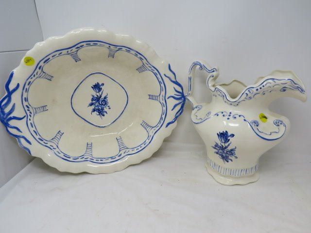 PITCHER AND BASIN (WHITE WITH BLUE DESIGN)
