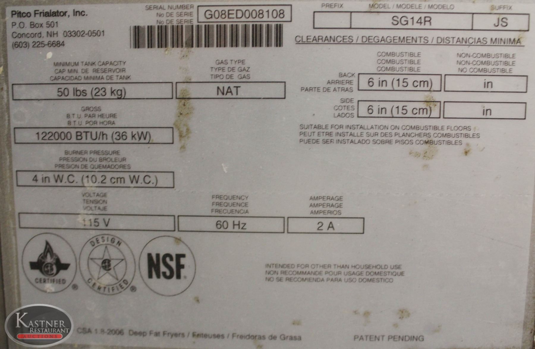 NATURAL GAS, M# SG14R , 50LB CAP. EACH, 122,000 BTU'S/HR. FILTER SHUTTLE. DUMP STATION MODEL: SGBNB14.(NOT A WARMER)