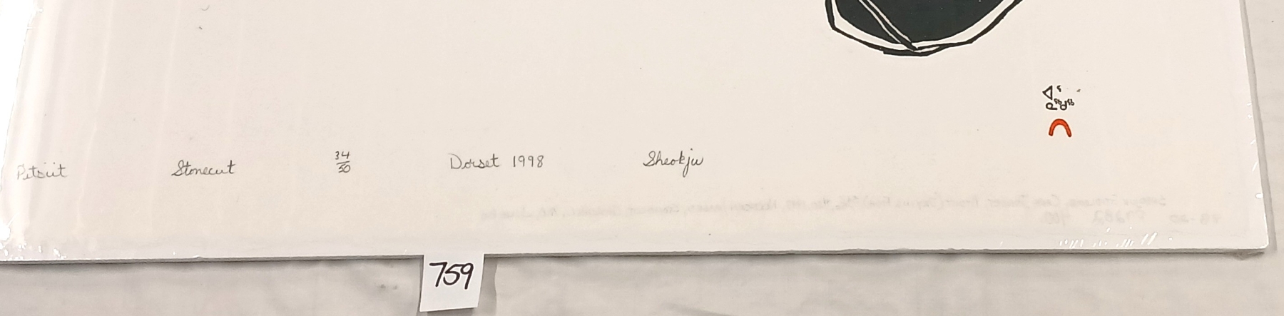 NOTE: 22.5 X 28.5IN - ARTIST ORIGINAL PRINT 34/50 - CIRCA 1998 - MADE IN CAPE DORSET