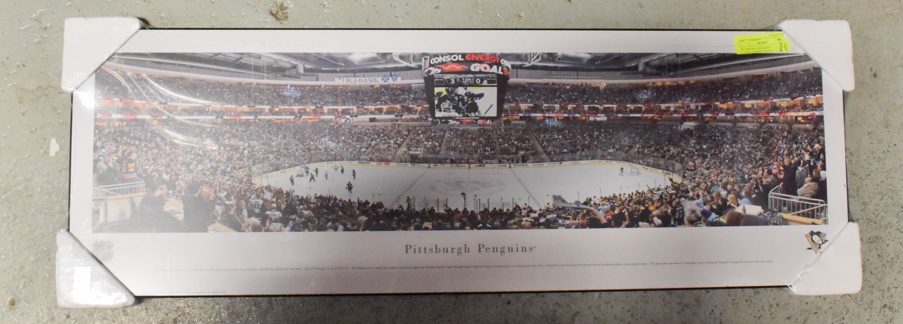 THIS 40"X13.5" AUTHENTIC NHL HARD FRAMED OF A PITTSBURGH PENGUINS FANS AND STADIUM. COOL PICTURE TO HANG IN MAN CAVE