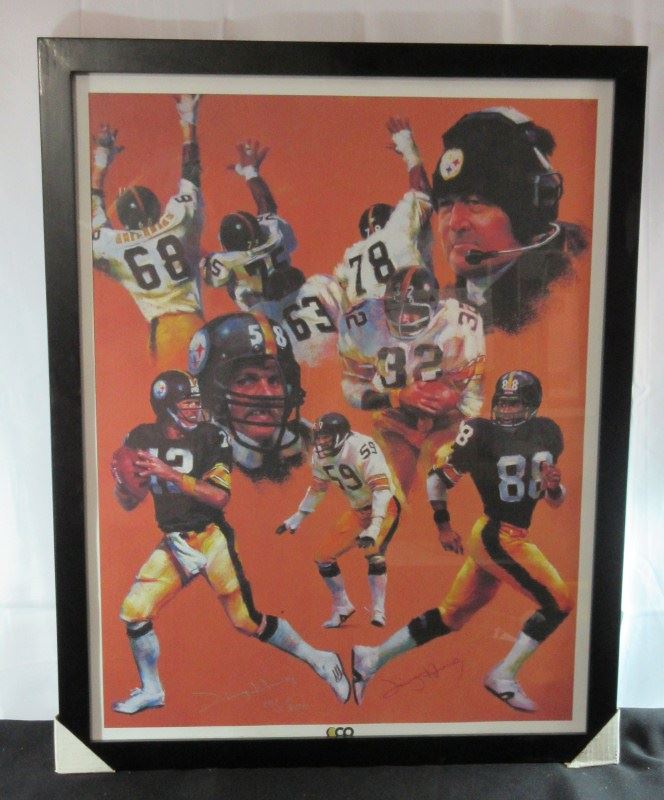 LIMITED LITHO of 1970's STEELERS SIGNED BY ARTIST AND NUMBERED / FRAMED PIECE, EST $75-$100