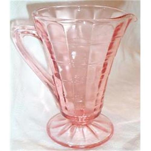 This very lovely Pink Footed Block Optic Depression Glass Creamer is in SUPERIOR condition with no chips, cracks, or dings and it measures 3" in diameter and stands about 4.75" tall.