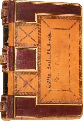 Fantastic original cattleman's ranch journal. Leather bound and embossed, with ranch ledger having recorded dates from 1881 through the 1890's.