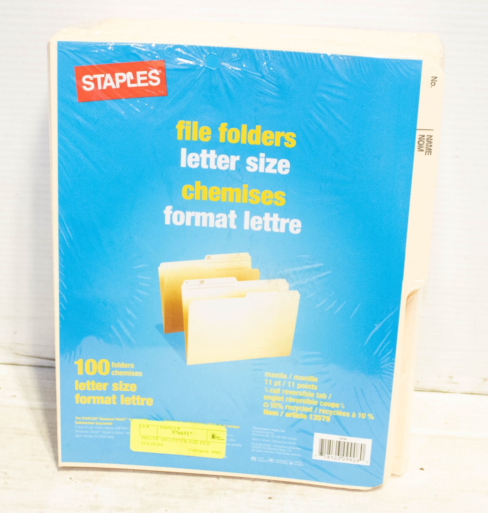PKG OF 100 LETTER SIZE FILE FOLDERS