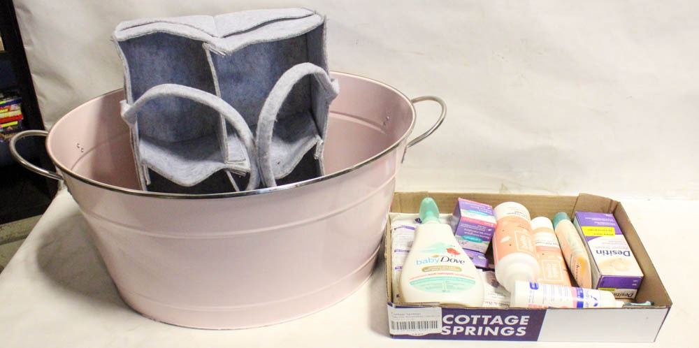 PKG OF BABY PRODUCTS PLUS TUB AND ORGANIZER