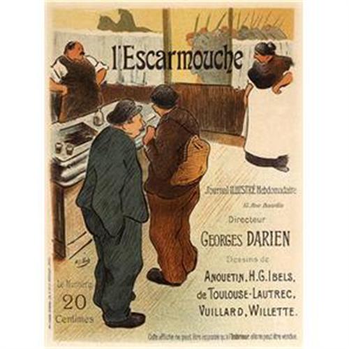 L'Escamouche (the Skirmish) is an interesting specimen of French poster art, which, however, because of the mysterious laws governing placards and posters, was never displayed on the streets but could only appear inside closed rooms, as is expressly stated on this poster"(bottom right) (Paris 1900, p.58)