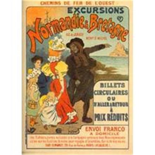 Poster for the Western Railway Company (Chemins de fer de l'Ouest). "Round trip tickets at reduced prices. Bulletins, booklets and guide books containing useful information concerning rates for excursions, resorts, etc., may be obtained free of charge from the company on request.