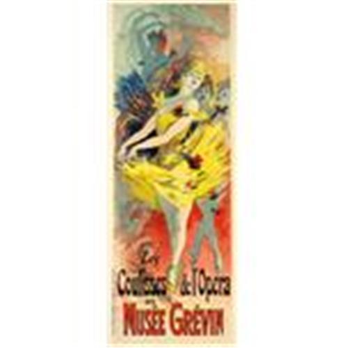 "For the show 'Backstage at the Opera' at the Grevin Museum, we observe a bevy of enchantresses practicing their dance steps, their movements caught so vividly we can practically feel the whiff of air stirred up by their pirouettes. This is one of Cheret's masterpieces. The place where shows like this were held is a Paris original: originally a waxworks founded around 1880 by caricaturist Alfred Grevin, it included a 500 seat auditorium were live performances were given to supplement the meagre income Grevin was making from the museum part of the operation. The theatre had mirrored walls, and Cheret himself painted the ceiling. The presentations included a mix of magic shows, revues and concerts, anything to bring in the patrons. What's perhaps most amazing is that the place is still in business and still uses the same approach of museum (22 tableaux from the Belle Epoque) and live entertainment" (Rennert, PAI-XXXII, 253)