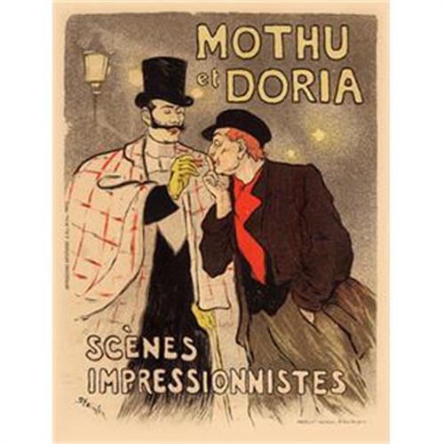 "The theatre goer enjoys the thrill and gets good value for his money, of seeing reproduced on the stage, the strange and rather sinister atmosphere of the underworld and demimonde. Steinlen's poster for the two singers Mothu and Doria also gives a delicate hint of the social tension of the period. There is still, of course, no social unrest. There appears to be no top or bottom to society but only a coexistence of opposites. But there is nevertheless a slight difference between belonging to the 'Paris that amuses itself' and the 'Paris that works.' Behind the peremptory 'A light, if you please, sir,' there is the haunting memory of the Weavers' Rebellion in 1844, which was brutally suppressed"(Paris 1900, p.38)