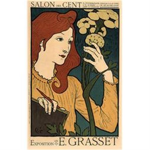 "For his own exhibition at the Salon des Cents, Grasset shows a chestnut-tressed artiste soulfully contemplating a tall-stemmed flower. A prose that is almost medieval in it's conception, and provides us with a rare glimpse straight into the heart of the moment when observation becomes inspiration"(Rennert, PAI-XXX, 233)