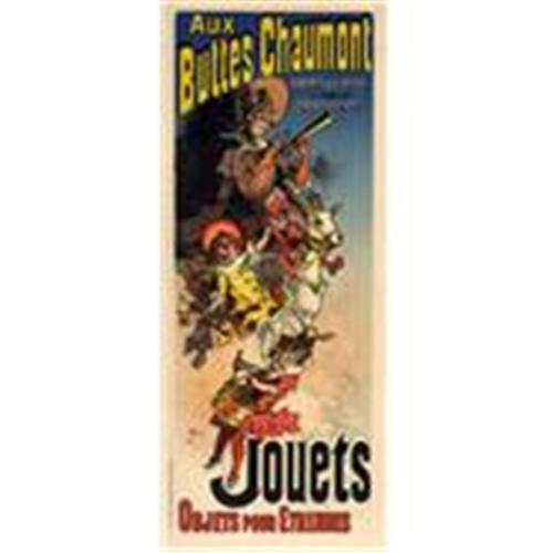 "The composition is somewhat nonsensical in this poster for a toy and gift sale. Essentially a grouping of figures loosely connected in order to take advantage of the verticality of the poster. It's the scale and Cheret's details that are so winning here. (Such as,) The pointy-chinned clown doll being plucked from a pet goat, it's legs akimbo. The way his costume matches the polka dots of the drummer. The bucked tooth kinship of the little girls, their hairdos wild with excitement. Cheret often portrayed children in his posters, largely for such toy and gift sale announcements. Hiatt refers to this commenting that 'The joy of the little ones in possession of their playthings is contagious' (Hiatt p.34). And the mother's expression as she serenely considers a fan for herself is absolutely sublime"
