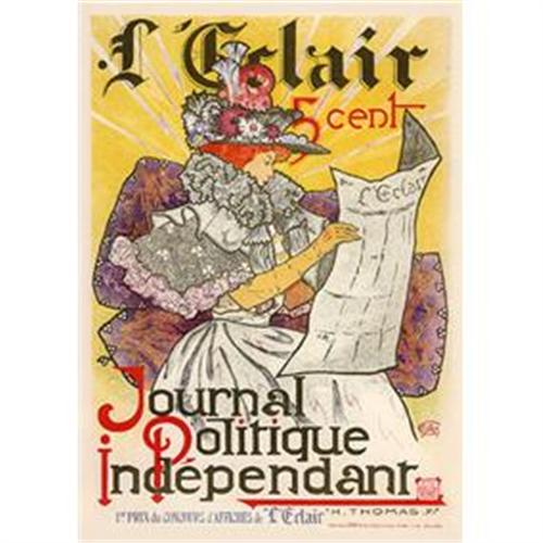 "Thomas was an American painter and lithographer, co-owner of the printing firm Thomas & Wyle pf New York. At the age of 63, he submitted this design to a competition sponsored by the Paris newspaper L'Eclair, to the surprise of many, including runners-up Vavasseur, Meunier and Gottlob, he won, and we think deservedly. It was one of the most successful poster competitions ever mounted, 500 entries were submitted, and the jury was a who's who of graphic giants of the day, including Puvis de Chavannes, Cheret, Forain, Grasset, Guillaume, Mucha, Steinlen and Willette" (Rennert, PAI-XVIII, 475)