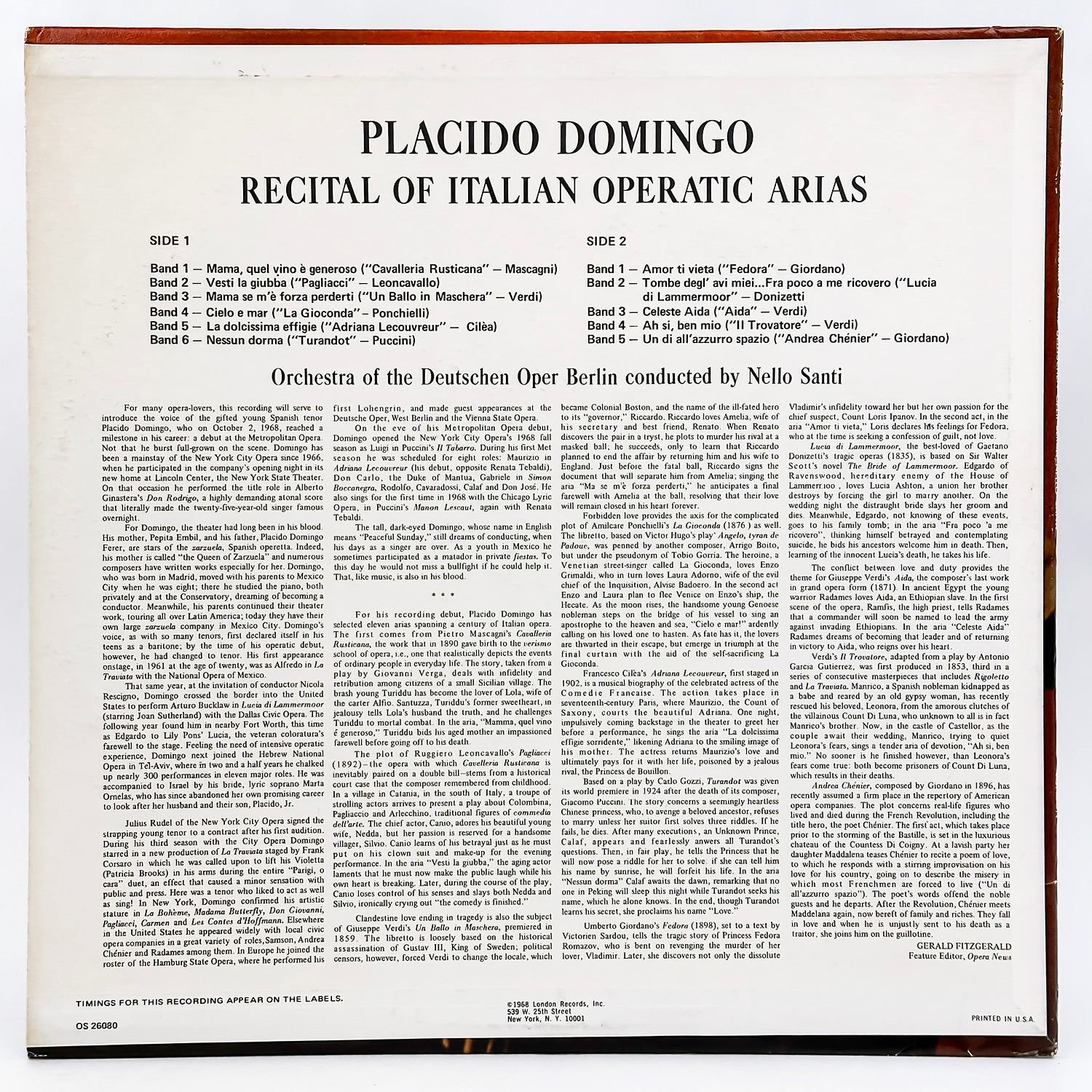 #9552 - FROM PRIVATE COLLECTION OF CLASSICAL/OPERA RECORDS. VINYL LP RECORD ALBUM. PLACIDO DOMINGO ORCHESTRA OF THE DEUTSCHEN OPER BERLIN - RECITAL OF ITALIAN OPERATIC ARIAS, CLASSICAL, RENAISSANCE, LONDON RECORDS OS 26080