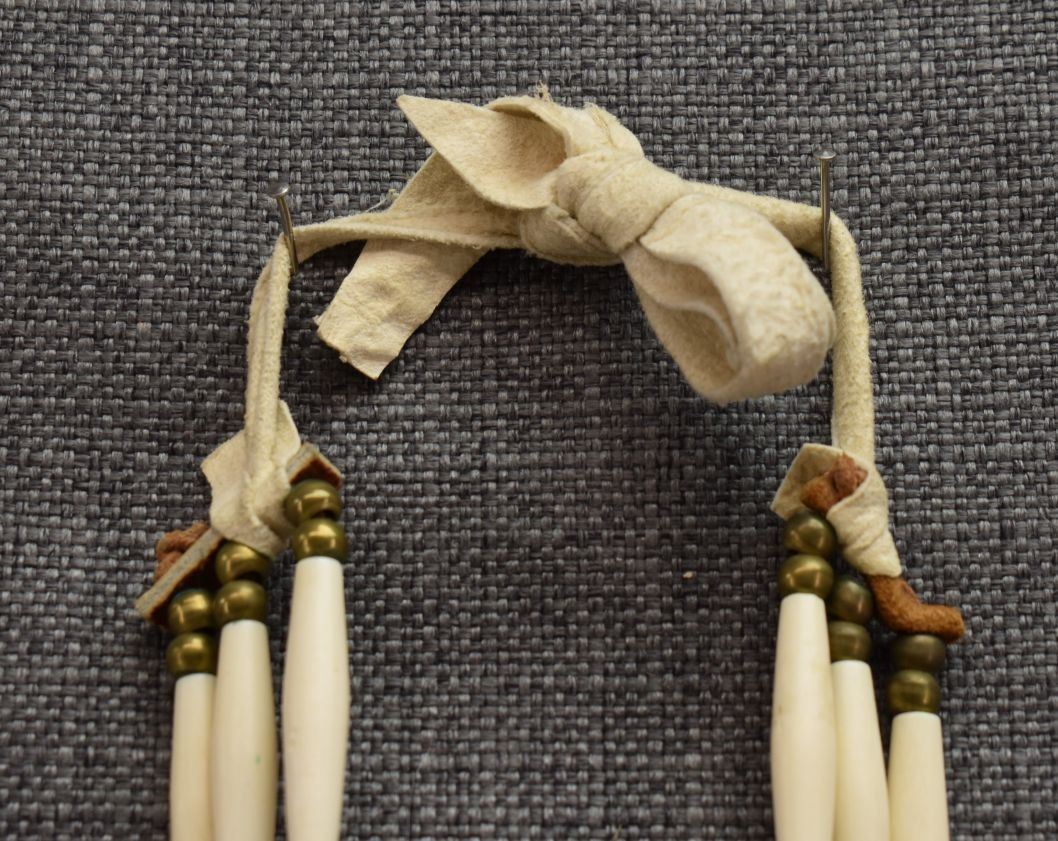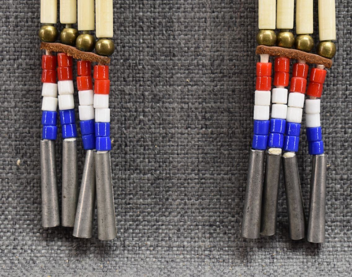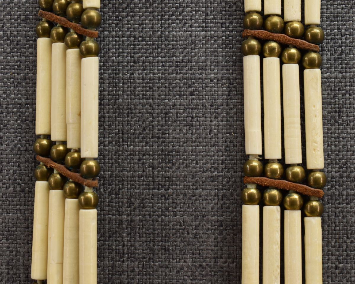 20th century plains Indian, hair pipe brass and glass beads 15" with drops 16.5" long