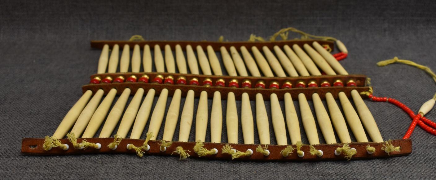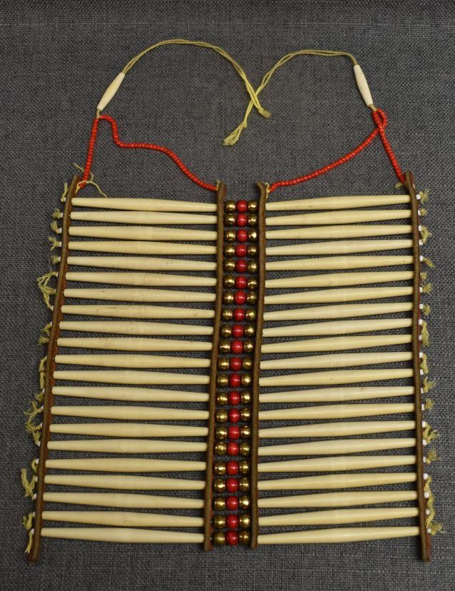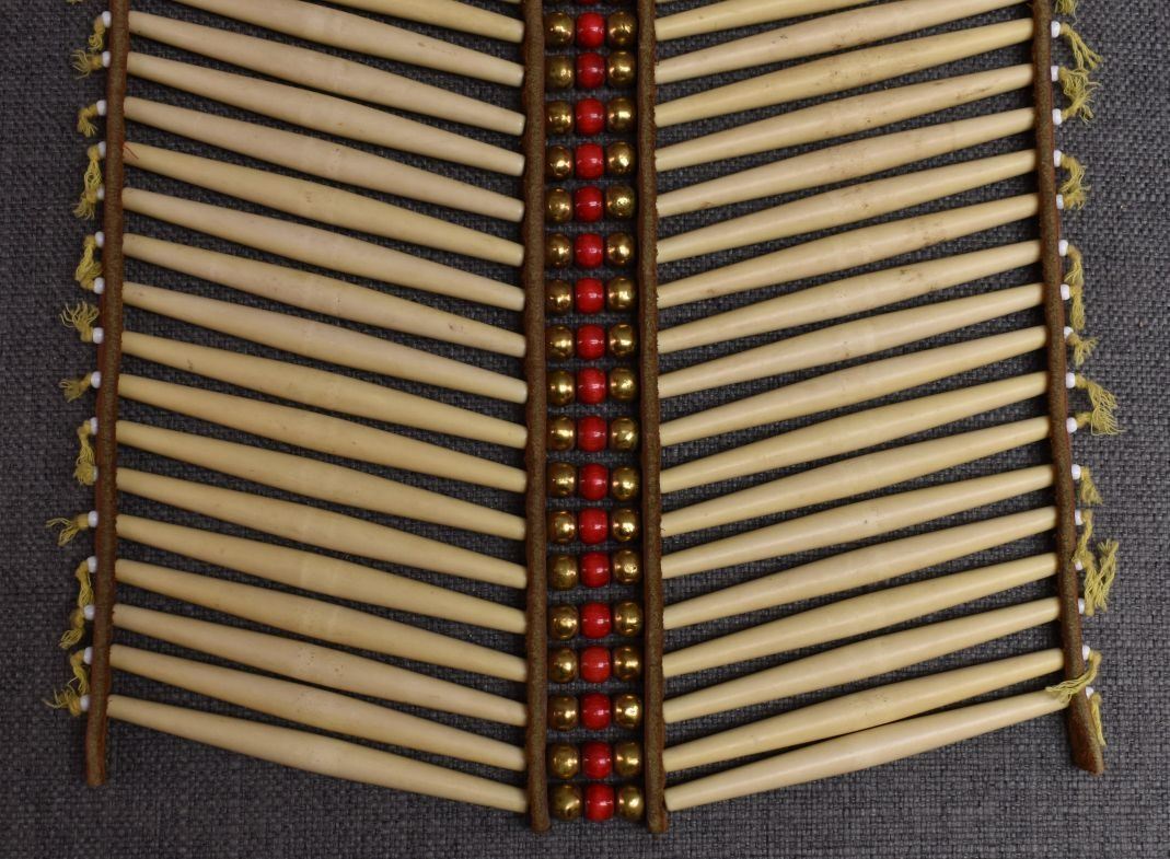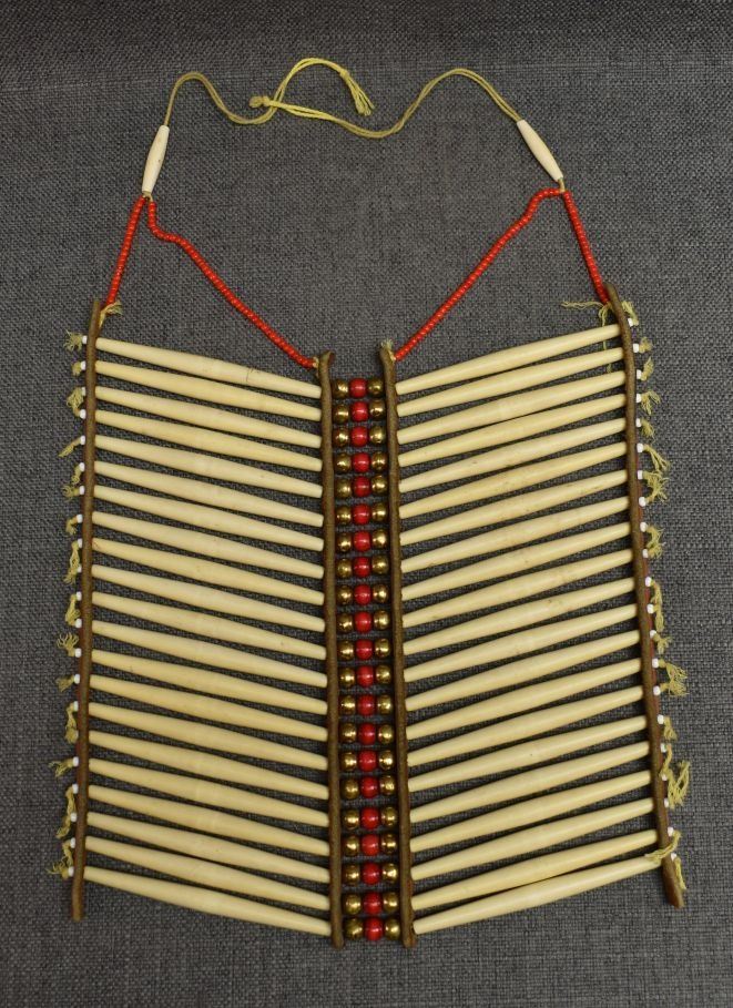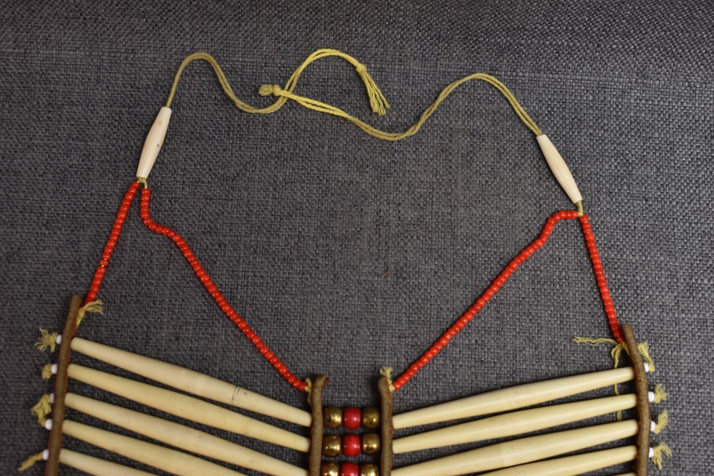20th century plains Indian hand made with string plastic bronze and glass beads with leather 14" x 10"