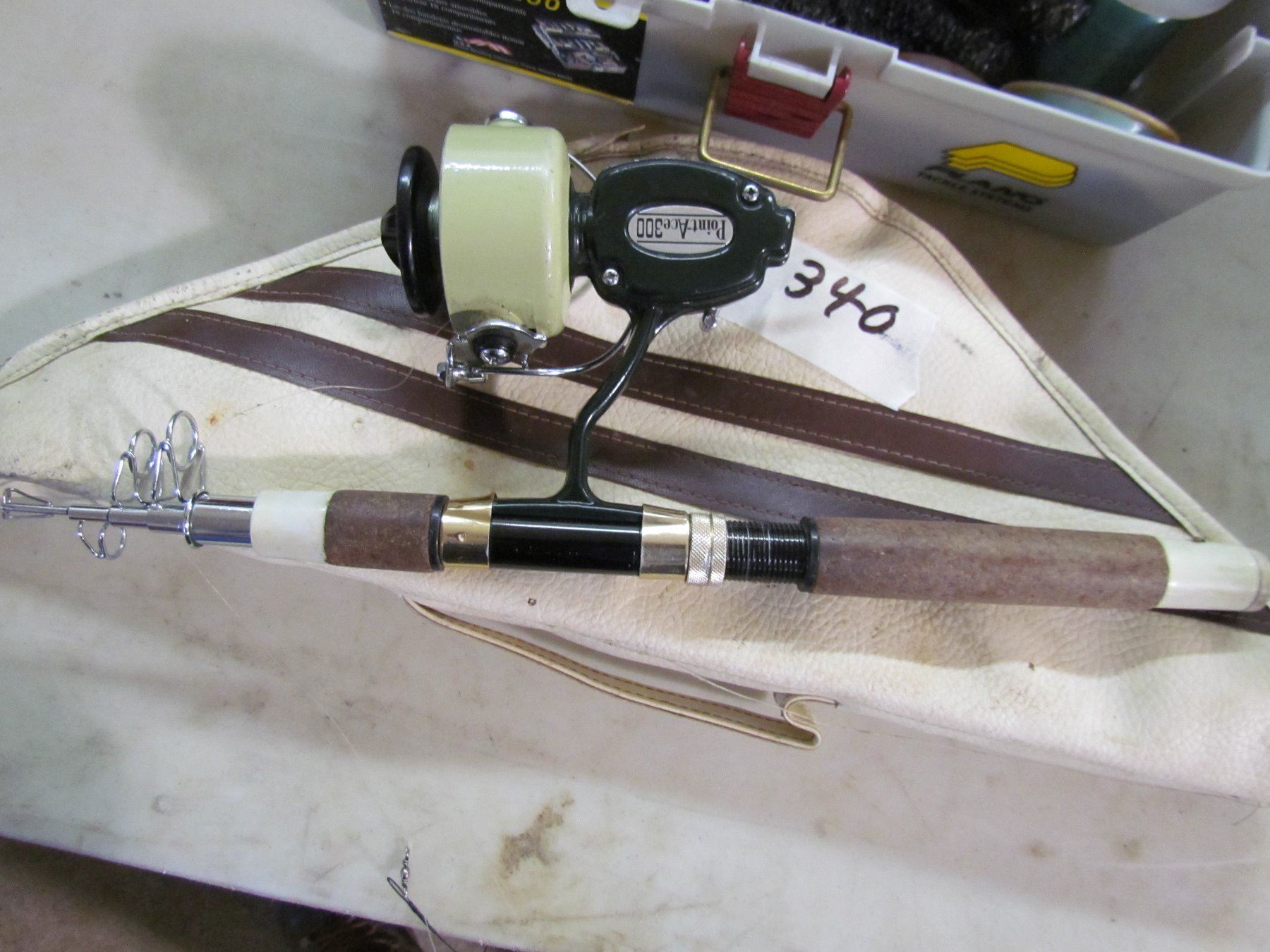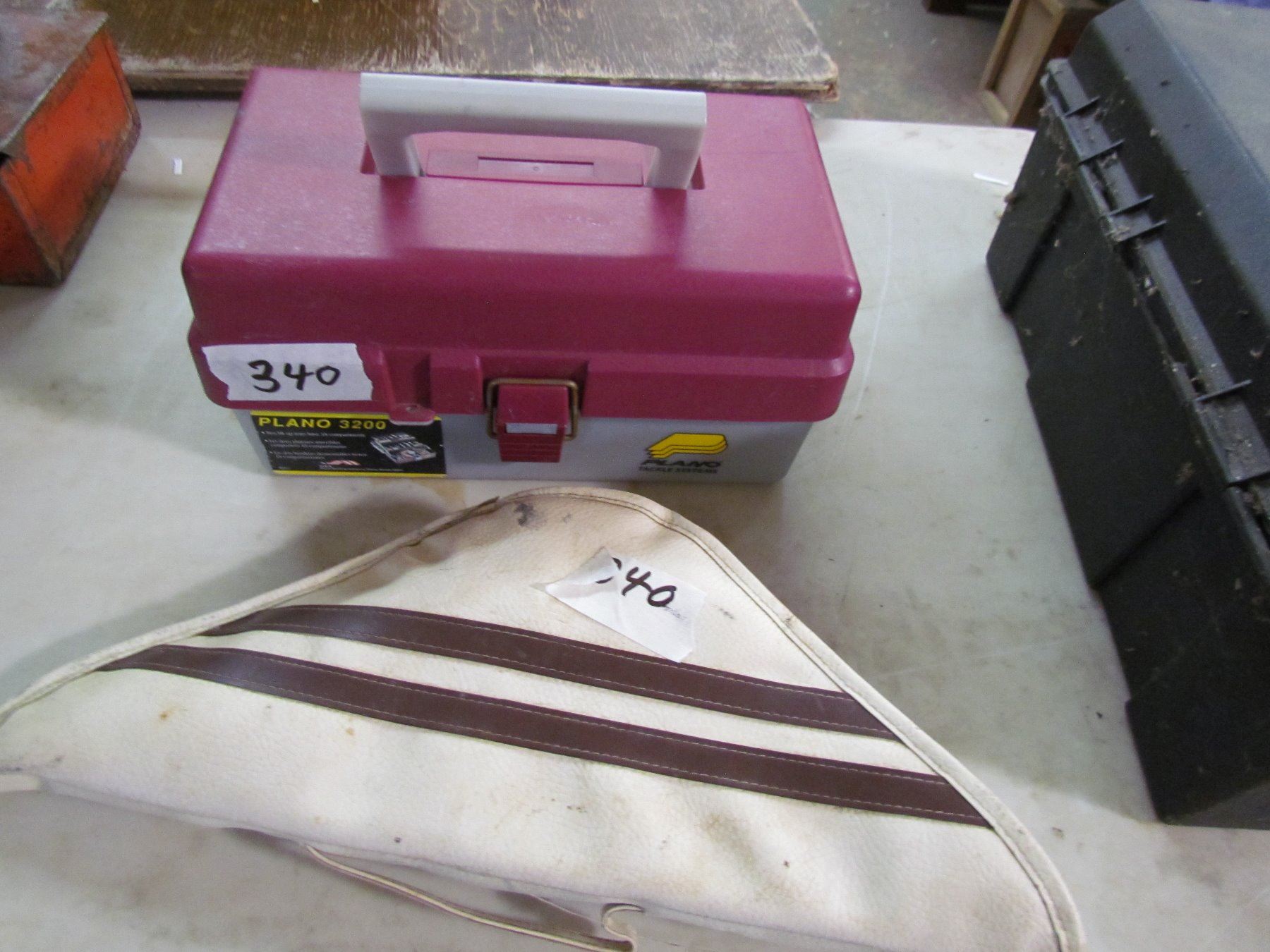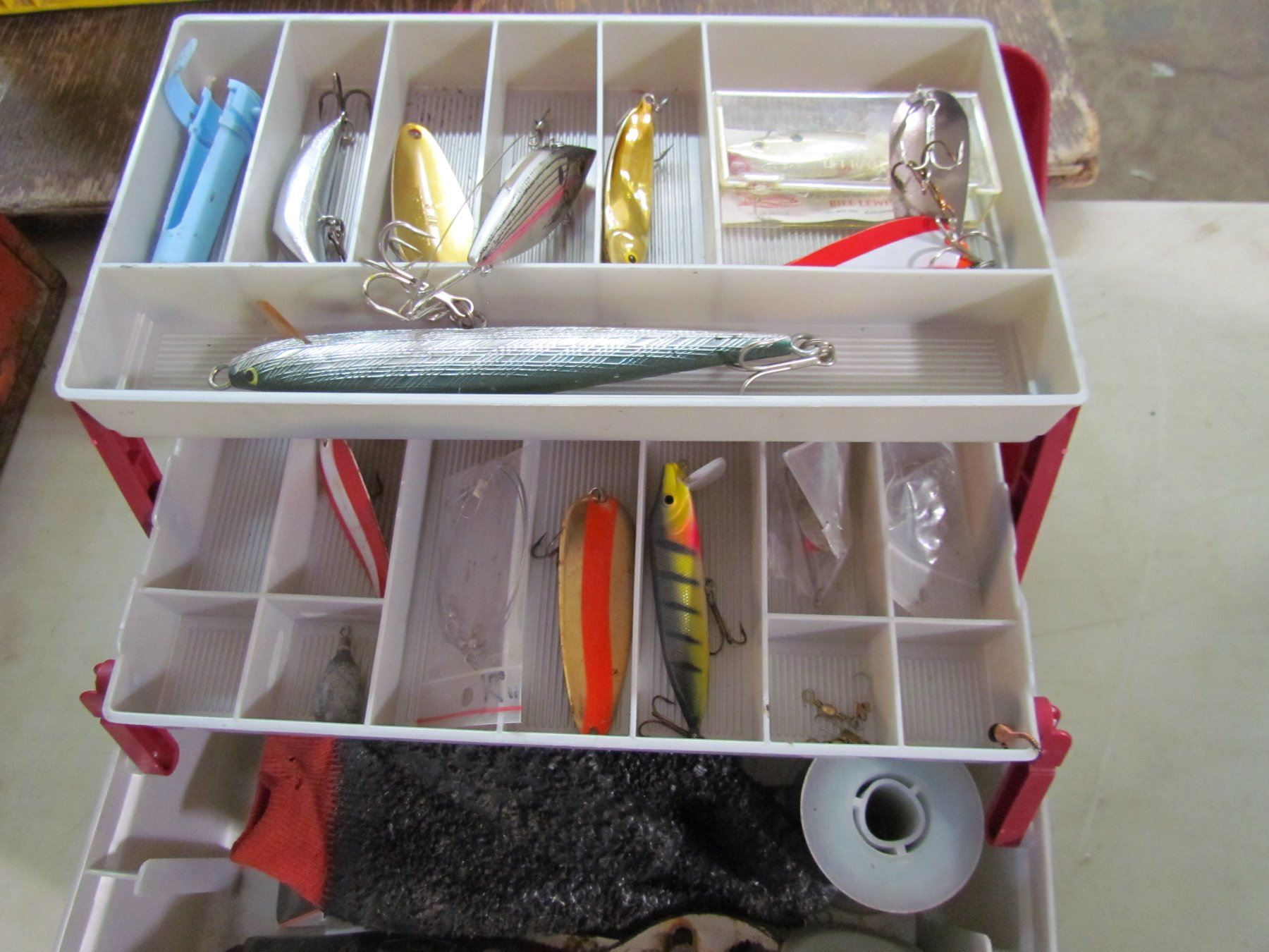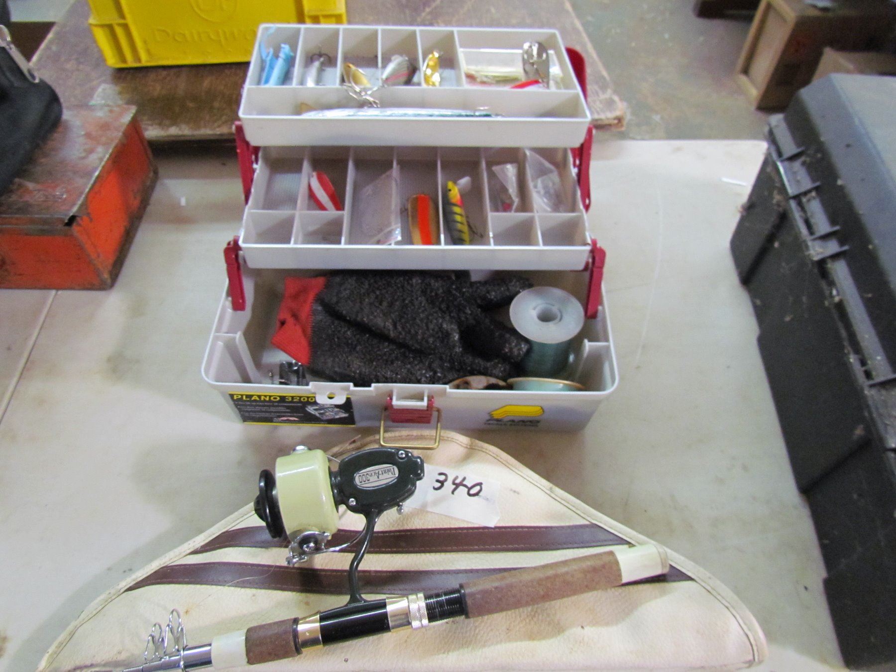 PLANO TACKLE BOX & CONTENTS W/ COLLAPSIBLE FISHING ROD