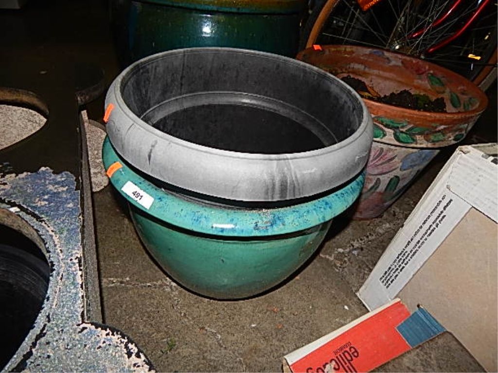 PLANT POTS - 1 CERAMIC AND 1 PLASTIC
