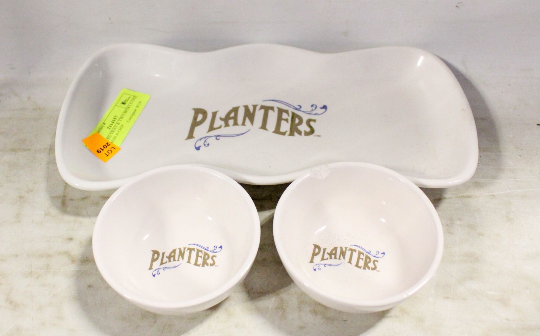 PLANTERS TRAY & TWO BOWLS ONE BOWL HAS A CHIP