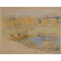 PLASKETT, Joseph Francis, R.C.A., 1918- . "Pond and Poplars". Pastel, signé et daté "1978". Pastel, signed and dated "1978". 19 1/4" x 25" - 48.8cm x 63.5cm. Provenance: Wallack Galleries, Ottawa. $600/800