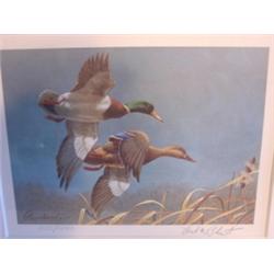 Plasschaert 1980 Federal Migratory Bird Hunting and Conservation Stamp and print. Numbered 11080/12950 and signed by the artist in lower right. 18" x 15.5" framed.