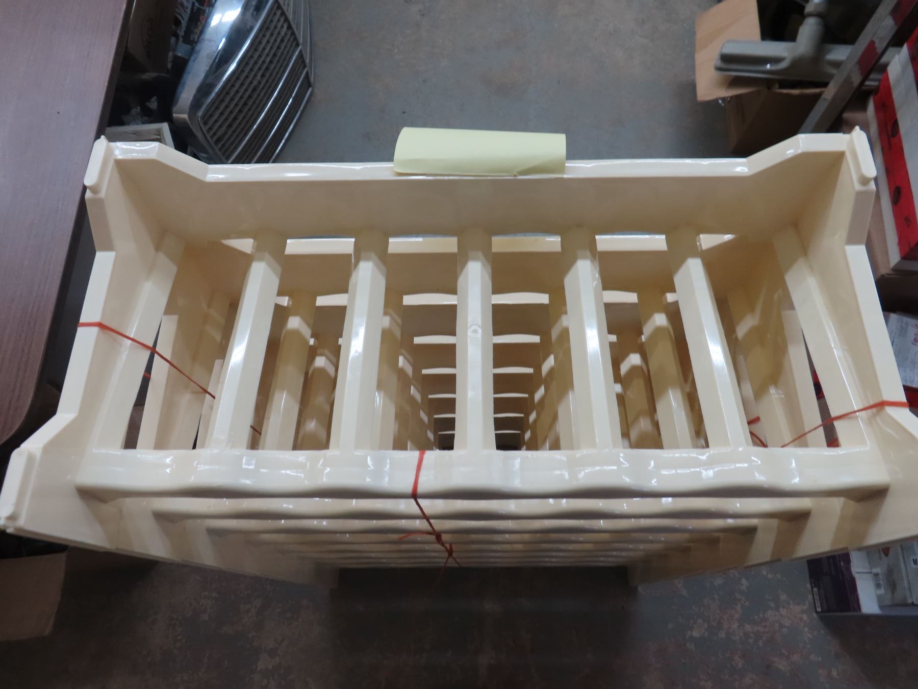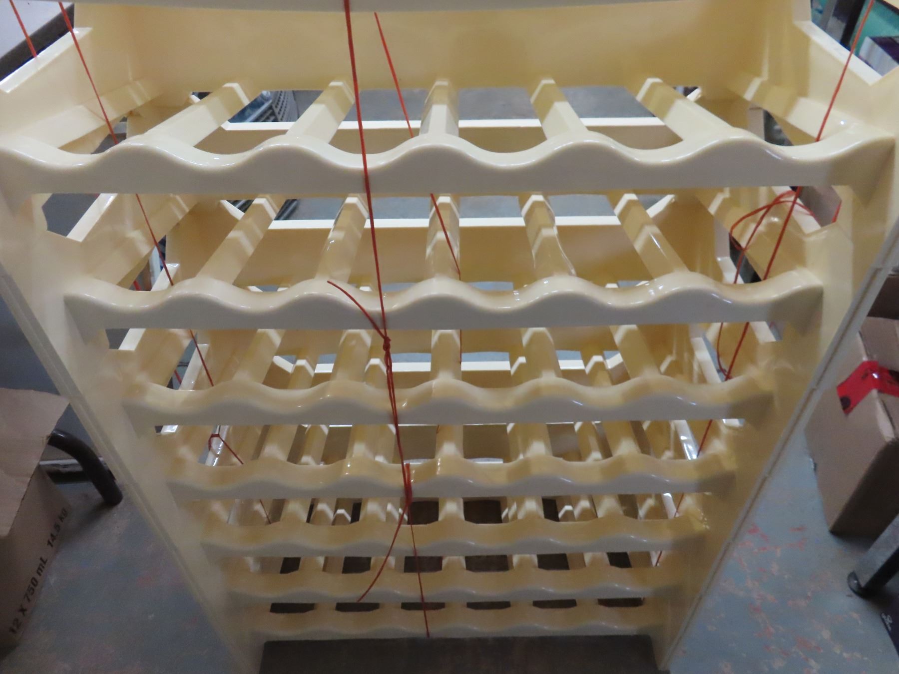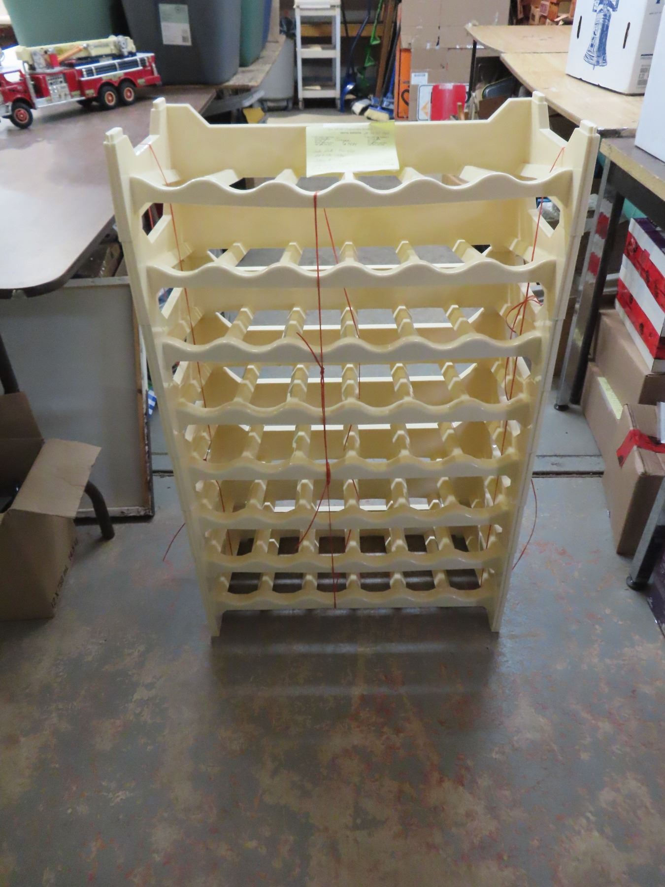 PLASTIC 8 WINE/BOTTLE RACKS—EACH RACK HOLDS 6 BOTTLES (48 in total). 37.5" (95cm) tall x 23.5 (60 cm) wide. Excellent condition.