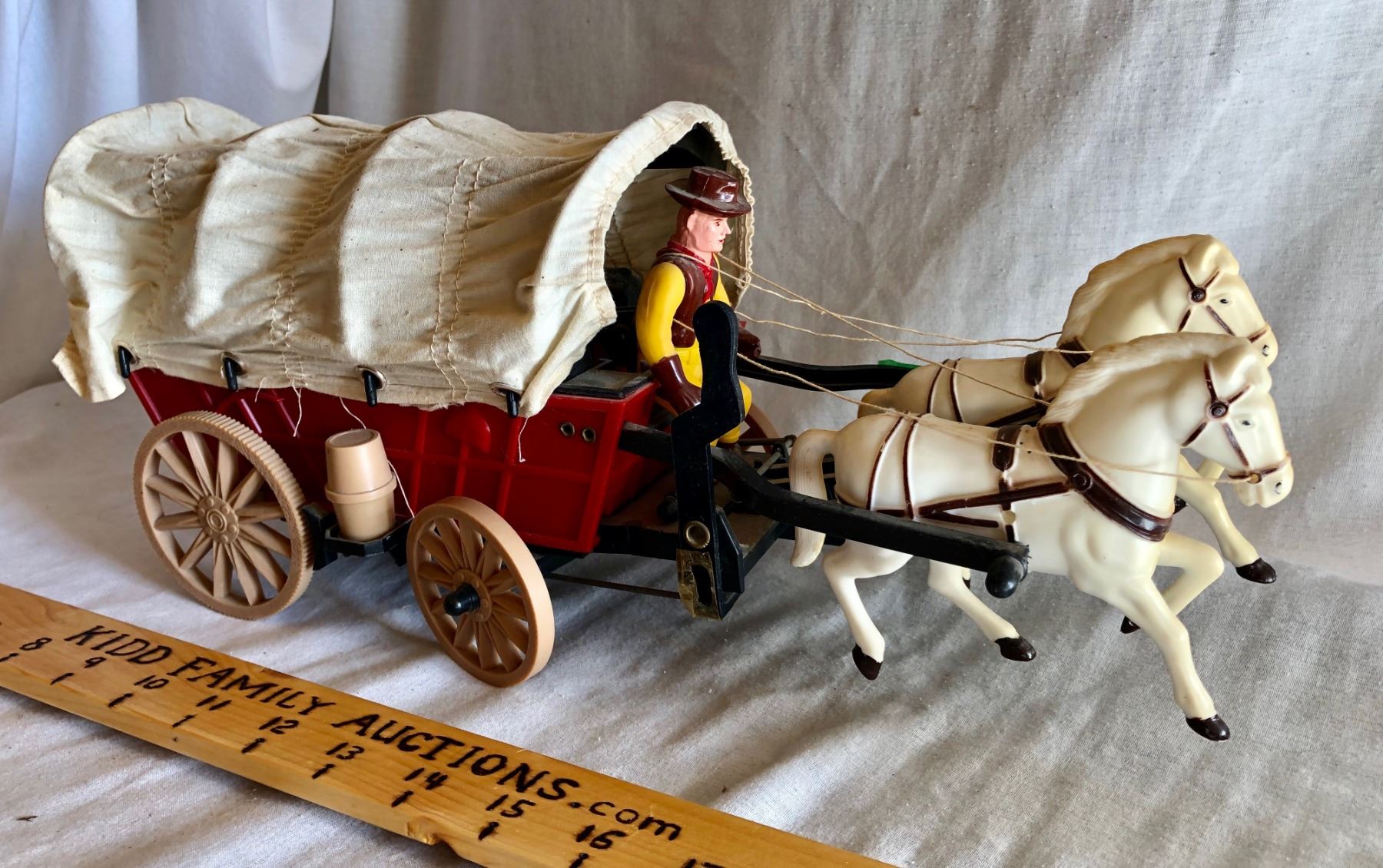 PLASTIC, CANVAS COVERED WAGON HAULING COAL