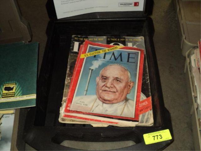 PLASTIC CASE W/ TIME, LOOK MAGAZINES