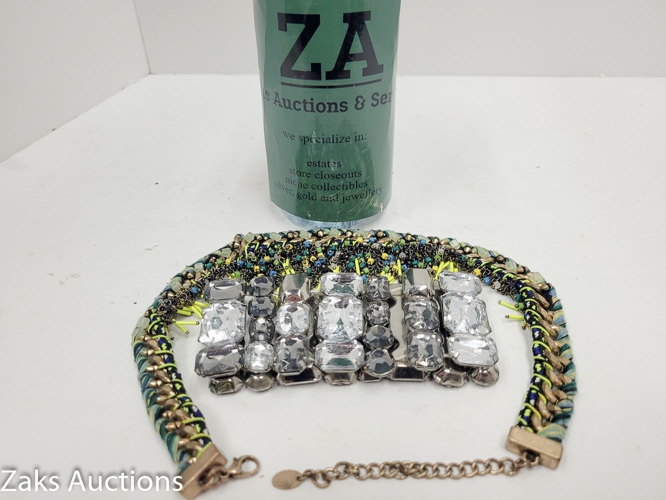 PLASTIC LARGE BRACELET AND 19" CHOKER WITH BLUE AND GREEN ACCENTS